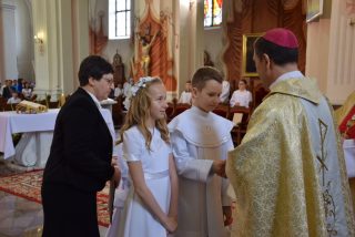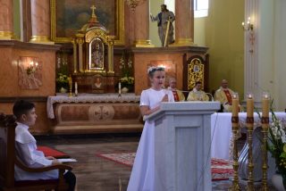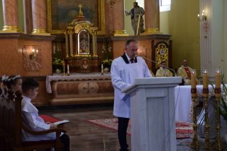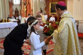 Uroczystość stała się dobrą okazją, by złożyć życzenia imieninowe zacnym solenizantom: ks. Biskupowi, który już niedługo będzie obchodził dzień swojego patrona, jak i ks. Proboszczowi kan. Wiesławowi Niemyjskiemu. Odpust ku czci Trójcy Świętej połączony był z rocznicą Pierwszej Komunii Świętej.