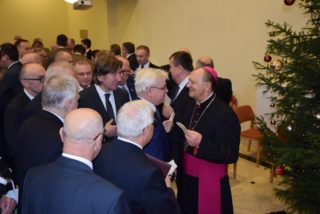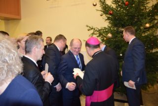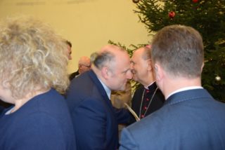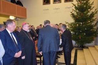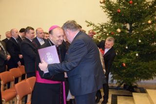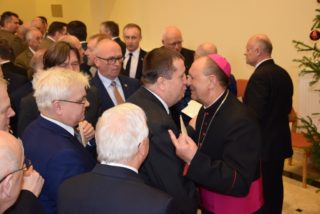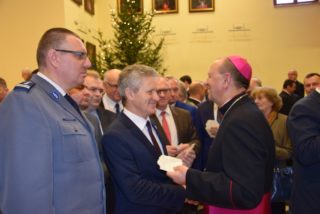 Ks. Biskup w noworocznym przesłaniu zachęcał do refleksji na temat sensu Bożego Narodzenia. Swoją myśl skupił w okół pytania: po co przyszedł na świat Syn Boży i narodził się Jezus? W odpowiedzi przypomniał świadectwo ks. Tadeusza Fedorowicza, który w jednej z konferencji prowadził podobną refleksję. Konkluzję stanowią słowa samego Jezusa, który przed Piłatem wyznał, że przyszedł, aby dać świadectwo prawdzie, której świat nie ma, ani nie jest w stanie o niej zaświadczyć, bo jej nie zna. Jezus rodzić się, aby dać świadectwo o tej prawdzie, o Ojcu, którego nikt nigdy nie widział. Jezus przyszedł, aby napełnić nasze życia Bożą obecnością, abyśmy byli dobrzy i święci jak Ojciec Niebieski – podkreślił ks. Biskup. Składając świąteczne i noworoczne życzenia ks. Biskup przede wszystkim podziękował za przybycie i obecność. Życzył, aby te święta Bożego Narodzenia były umocnieniem w wierze, nadziei, aby była w nas ta niezwykła moc, bez której trudno jest żyć – moc miłości. (Zobacz pełen tekst wystąpienia)
