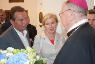 Ks. bp Tadeusz Pikus powitał dostojnych gości z Polski i nie tylko, wśród których znaleźli się: duchowni wyznania katolickiego oraz prawosławnego, siostry i bracia zakonni, alumni Wyższego Seminarium Duchownego w Drohiczynie, członkowie różnych bractw, stowarzyszeń i wspólnot kościelnych. Nie zabrakło przedstawicieli władz państwowych i samorządowych, rodziny i krewnych jubilata, służb mundurowych, kombatantów, leśników, myśliwych, harcerzy, Bractwa Kurkowego, rycerzy drohickich. Jubileusz biskupstwa zgromadził także przedstawicieli świata nauki, twórców kultury i sztuki. Ks. bp Tadeusz Pikus pozdrowił również słuchaczy Radia Maryja i widzów Telewizji Trwam, która to 16 lat temu 10 czerwca 2003 r. zainaugurowała swoją działalność w Drohiczynie. Środki społecznej komunikacji reprezentowane były także przez Telewizję i Radio Białystok oraz Centrum Informacji Diecezji Drohiczyńskiej.