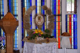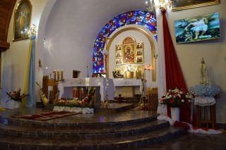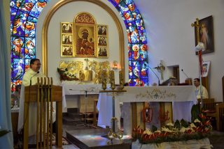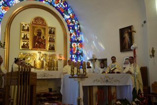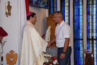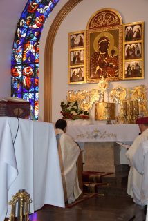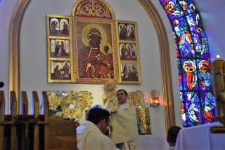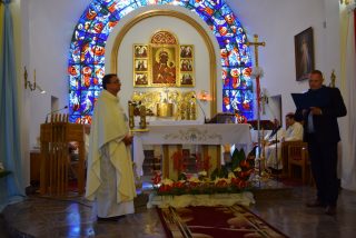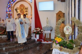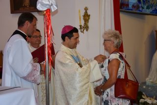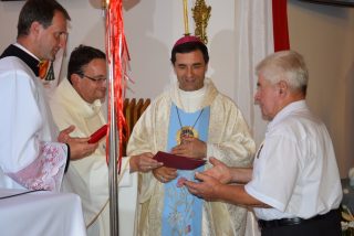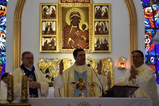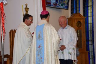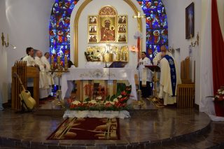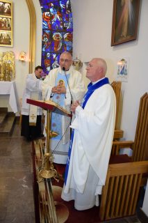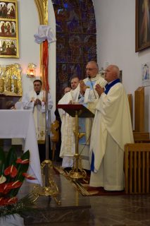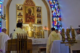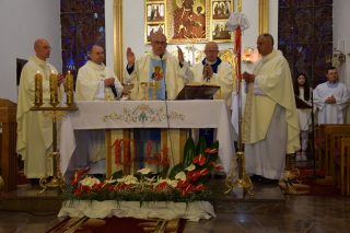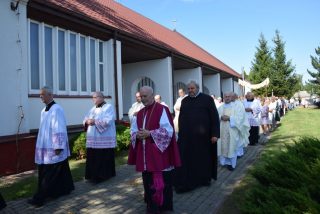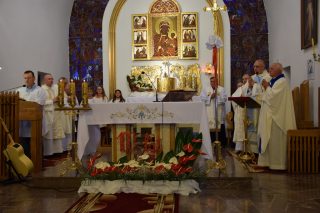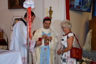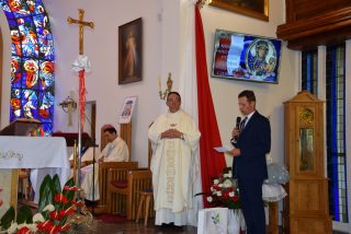 Tuż przed rozpoczęciem Eucharystii ks. Biskup poświęcił odnowiony obraz Matki Bożej Częstochowskiej, czczony jeszcze w pierwszym kościele. Wizerunek Pani Jasnogórskiej został umieszczony na frontonie obecnego kościoła. Ekscelencja poświęcił również pamiątkową tablicę, przypominającą o jubileuszu parafii, która zawiera kamień ze szczytu Góry Synaj. Jak zaznaczył miejscowy proboszcz ks. Artur Płachno, ma on przypominać o Dekalogu – Prawie przekazanym przez Boga, którym lokalna wspólnota parafialna pragnie się kierować i pozostać mu wierna.
