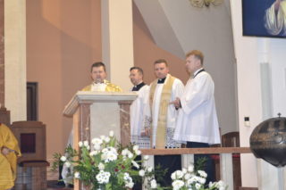 W wygłoszonej homilii ks. bp Antoni Dydycz nawiązał do swojego pobytu w Rosji, do braku świątyń oraz kapłanów, co utrudniało rozwój duchowy tamtejszych katolików. Kościół bez kapłana nie jest pełny, nie pozwala w pełni przezywać wiary, nie ma możliwości korzystania z sakramentów. Podwójny jubileusz obchodzony 8 kwietnia w Sokołowie Podlaskim skłania na do dziękowania Bogu za dar kapłaństwa i możliwość wyznawania wiary w pięknej świątyni. Dodatkowo kościół ten jest Sanktuarium Bożego Miłosierdzia, a miłosierdzie to światło, które wskazuje nam jak mamy patrzeć na ziemię i postępować w czasie całego życia. Ksiądz Biskup zachęcił również do dziękowania Bogu za opiekę nad nami, za wolność Ojczyzny, za możliwość wyznawania wiary.