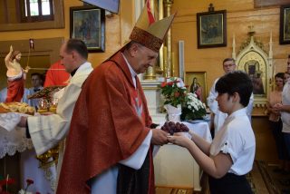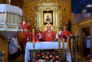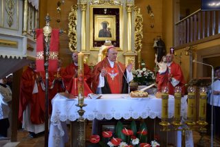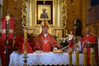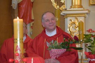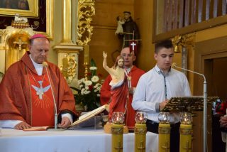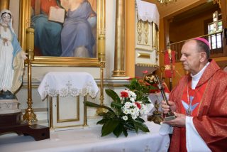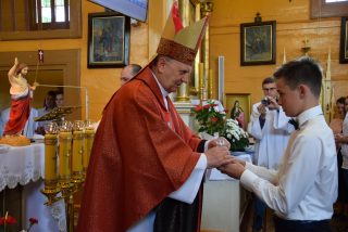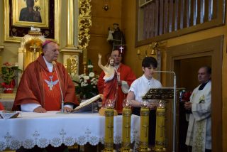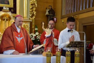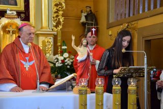 Ks. Biskup poświęcił krzyżyki misyjne, tablicę upamiętniającą przeprowadzone Misje oraz krzyżyki dla bierzmowanych. Pogratulował jubileuszu parafii. Zwracając się do bierzmowanej młodzieży przypomniał rolę i znaczenie Ducha Świętego w życiu chrześcijanina, który uzdalnia go do mężnego wyznawania wiary.