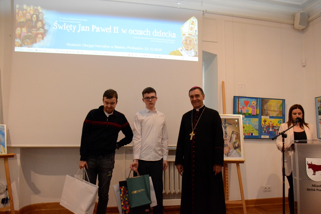W Muzeum Obojga Narodów w Bielsku Podlaskim, 22 października 2025 r., nastąpiło uroczyste podsumowanie jubileuszowej, XX edycji Międzynarodowego Konkursu Plastycznego „Święty Jan Paweł II w oczach dziecka”.