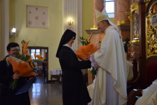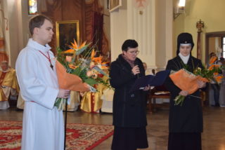 Na zakończenie Eucharystii słowa życzeń księżom biskupom oraz wszystkim kapłanom złożyły przedstawicielki osób życia konsekrowanego.