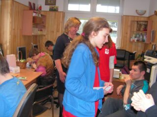 Po zakończonych uroczystościach w ZOL w Bacikach wolontariusze Caritas odwiedzili też uczestników Warsztatu Terapii Zajęciowej w Siemiatyczach.