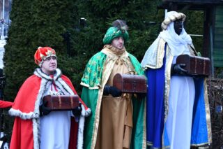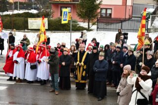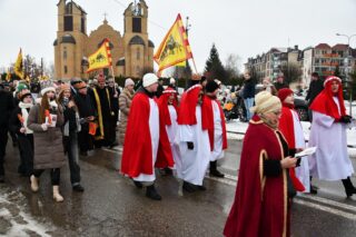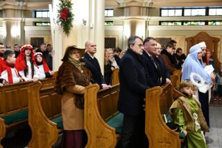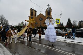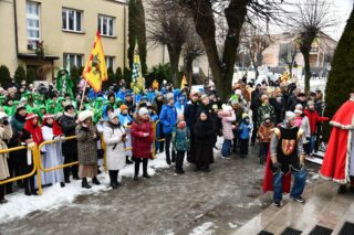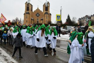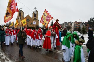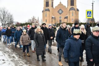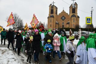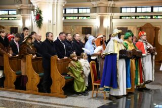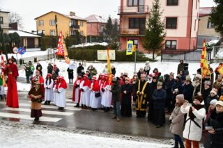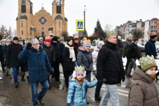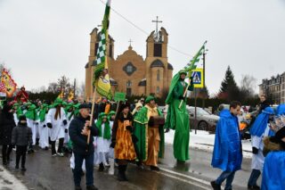 Zanim barwny korowód wyruszył z kościoła pw. św. Andrzeja Boboli, biskup przewodniczył Mszy św. Słowa powitania skierował miejscowy proboszcz ks. kan. Bohdan Sawicki. On też, tuz przed rozpoczęciem Eucharystii, wprowadził trzech Mędrców do świątyni.