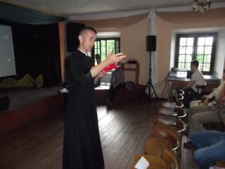 Pierwsza „Duszolotni” stawiała przede wszystkim na rozwój duchowy. Obok licznych warsztatów, na gości czekały wystąpienia prelegentów oraz uwielbienie. W tym roku „Duszlotnia” zagościła w węgrowskim klasztorze. Całe wydarzenie rozpoczęła Msza Święta, której przewodniczył ks. Robert Grzybowski dyrektor Szkoły Nowej Ewangelizacji w Drohiczynie, który wygłosił kazanie a w dalszej części spotkania, już na sali widowiskowej, wygłosił konferencję do przybyłych na temat przewodni tegorocznej imprezy „Boże słodki, skąd te troski?” Być może temat trochę przewrotny jednak bardzo poważny. Tym razem ks. Robert zwrócił uwagę, iż w Jubileuszowym Roku Miłosierdzia patrząc na nasze życie i to jak w nim postępujemy musimy mieć świadomość, że wszystkie nasze uczynki i wybory będą poddane Bożej Sprawiedliwości. Pan Bóg jest miłosierny i wybaczający, ale konsekwencje za wszystko co w życiu się wydarzyło poniesiemy my. Zarówno za dobre i złe uczynki. Oby tych dobrych było więcej to i trosk będzie mniej… „Boże słodki, skąd te troski?” – takim pytaniem ks. Robert Grzybowski zakończył swoją prelekcję.
