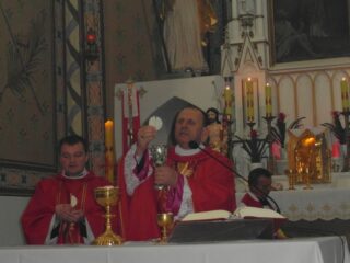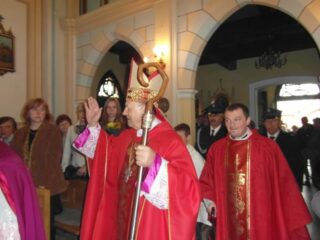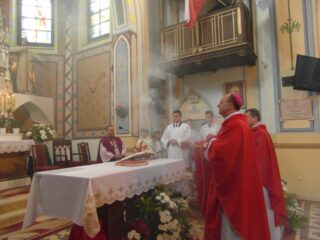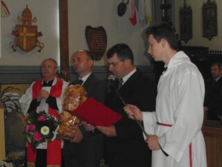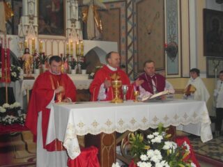 Konsekrację świątyni można porównać do chrztu człowieka – mówił w homilii ks. bp Tadeusz Pikus. „Tak, jak w czasie chrztu poprzez ten sakrament Bóg przychodzi do nas, rodzi się w nas wiara, gładzony jest grzech pierworodny, my jesteśmy włączeni do wspólnoty Kościoła, a wspólnota Kościoła jest wtedy, gdy jest w niej obecny Bóg żywy. Możemy powiedzieć, że kiedy następuje konsekracja świątyni, dokonuje się rodzaj chrztu, bo oto Bóg otrzymał dom – dom zbudowany przez człowieka, gdzie Bóg rzeczywiście przebywa w tym, co zostało mu poświęcone. Oddajemy Bogu to miejsce na jego dom i już nie można zmienić przeznaczenia tego miejsca”.