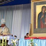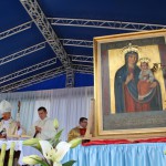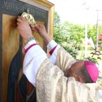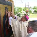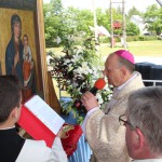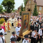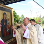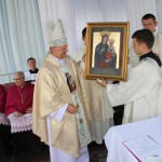Ksiądz biskup mówił też o różnorodności ukazywania oblicza Maryi, związanej z tradycją, kulturą i objawieniami Jej w świecie, za który kryje się zawsze ta sama Matka, która była w czasie ziemskiego życia Chrystusa, a dzisiaj ułatwia drogę do Niego. Nawiązując zaś do Maryi ukazanej na obrazie w Domanowie podkreślił, że jest on naznaczony wielką miłością ofiarodawcy do swej zmarłej żony oraz wiarą w pomoc Maryi, czego znak widać w napisie umieszczonym pod nim. Przypomniał trudne czasy dla ludności polskiej na terenach Podlasia oraz zaufanie Matce Bożej do której ci ludzie przybywali. O otrzymywanych łaskach za Jej pośrednictwem świadczą pozostawiane wota. Przytoczył on także dokument potwierdzający przekazanie do depozytu w czasie powstania kościuszkowskiego, precjozów z domanowskiego kościoła, w tym także ozdób          z obrazu Maryi,  które nigdy tam nie powróciły, wpisując się w historię drogi Polaków do wolności.