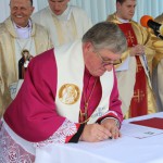 Ks. Wojtkowski w swoich podziękowaniu podkreślił wielką współpracę                  w przygotowaniu uroczystości z obecnym i poprzednim ordynariuszem, władzami Gminy Brańsk, artystami, miejscową szkołą i wieloma instytucjami              z sąsiednich miejscowości.  Odmówił również uroczyście modlitwę do Matki Bożej Domanowskiej.
