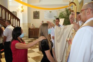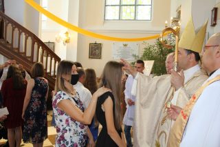 Zwrócił się również do bierzmowanej młodzieży. Wyraził nadzieję, że młodzi chrześcijanie „pomogą, by i nowe i historyczne świątynie nie świeciły pustkami, ale były miejscem napełniania się światłem i mocą Chrystusa, podejmowania chrześcijańskiej misji z radością, z miłością, z wiarą; by nie były tylko podziwiane z zewnątrz, ze względu na piękno architektury, ale by były żywą przestrzenią spotkania z Bogiem i z braćmi”.