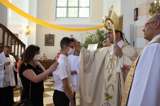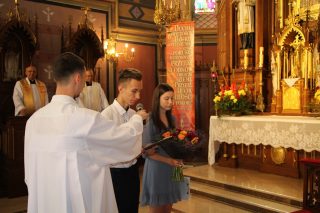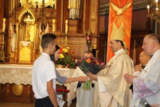 O udzielenie zgromadzonej młodzieży sakramentu bierzmowania poprosili ks. Biskupa przedstawiciele rodziców oraz miejscowy proboszcz ks. kan. Henryk Sączek. Do sakramentu przystąpiło trzydzieści osób. Reprezentanci młodzieży na zakończenie liturgii odmówili specjalną modlitwę oraz podziękowali Ekscelencji za udzielenie sakramentu bierzmowania.