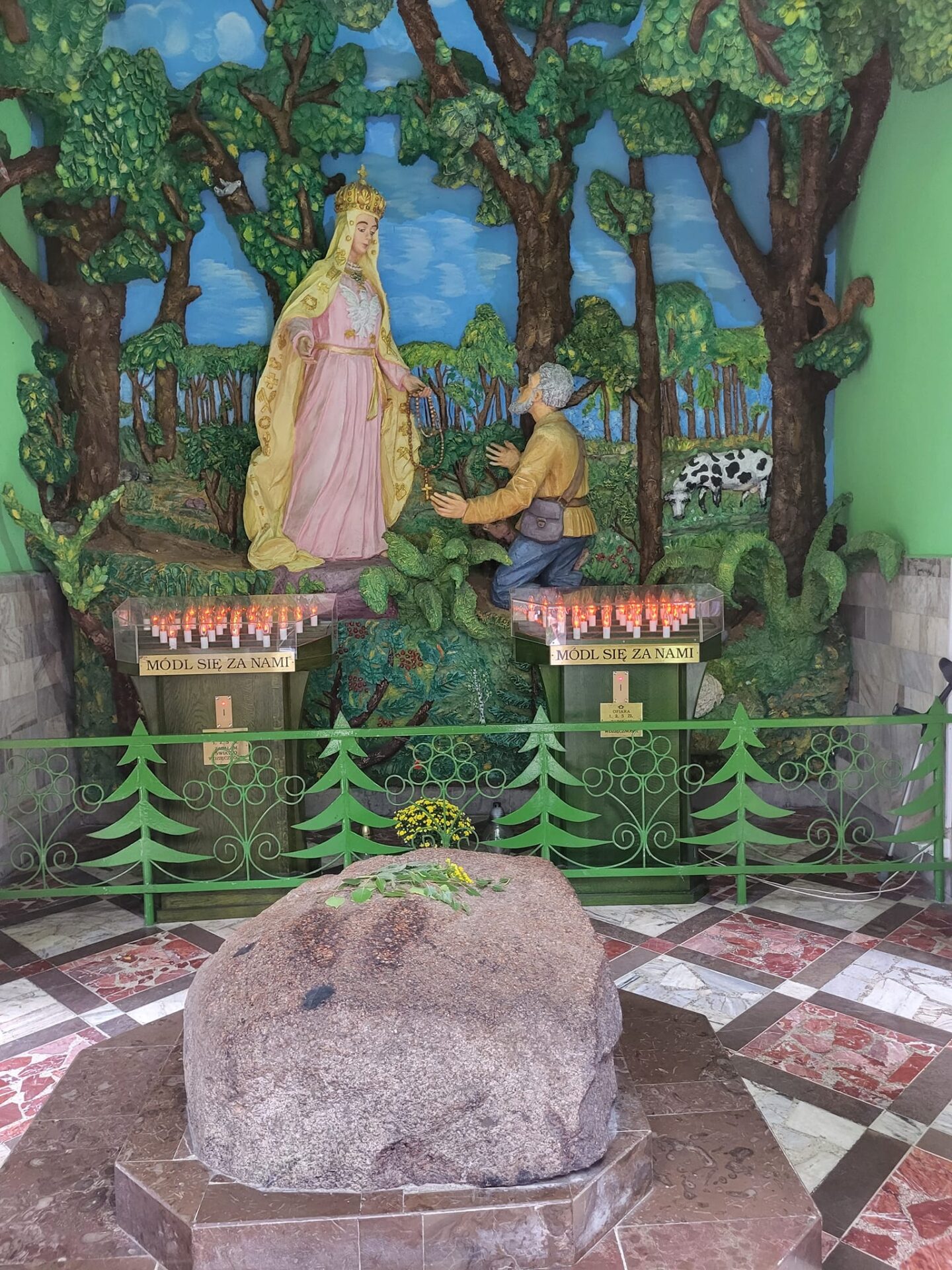 W drodze powrotnej do Kosowa Lackiego zajechaliśmy do: Głogowca (aby choć na chwilę wejść do domu w którym wychowywała się późniejsza święta – Helena Kowalska) i Świnic Warckich – miejsca narodzin i chrztu św. siostry Faustyny Kowalskiej. W tym szczególnym miejscu uczestniczyliśmy w Godzinie Miłosierdzia. Dzięki siostrze Tymotei poznaliśmy historię Sanktuarium Narodzin i Chrztu św. siostry Faustyny Kowalskiej.