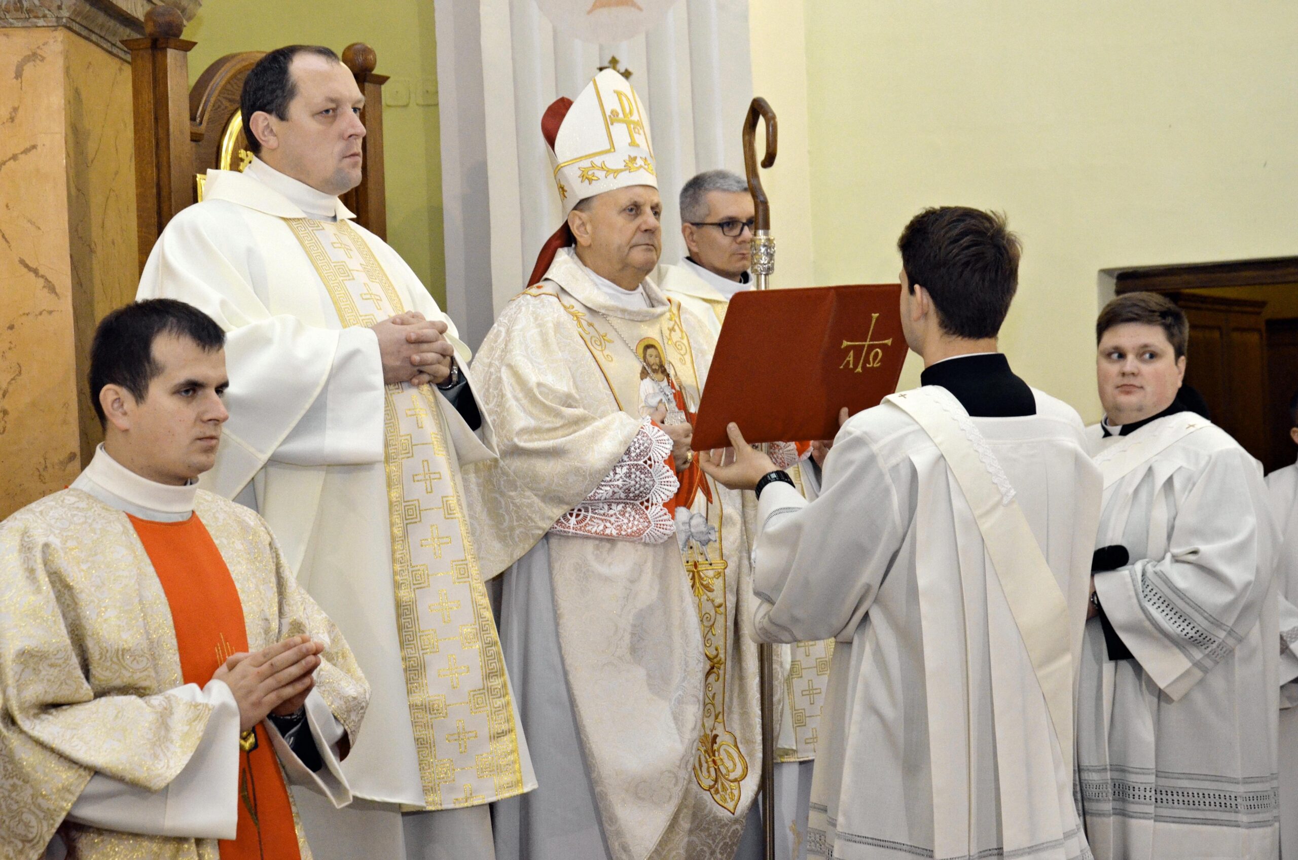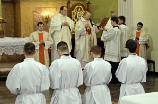 Tradycyjnie już w niedzielę tę alumni V roku WSD zostają uroczyście włączeni do grona kandydatów przygotowujących się do przyjęcia święceń diakonatu i kapłaństwa. Wezwani po imieniu stanęli przed ks. Biskupem: al. Sylwester Grzeszczuk, al. Bartosz Margański, al. Michał Sawicki, al. Mateusz Ujazdowski i wyrazili swoją gotowość i wolę w sumiennym przygotowaniu się do przyjęcia święceń. Na ten czas ks. Biskup udzielił kandydatom pasterskiego błogosławieństwa, któremu towarzyszyła specjalna modlitwa.