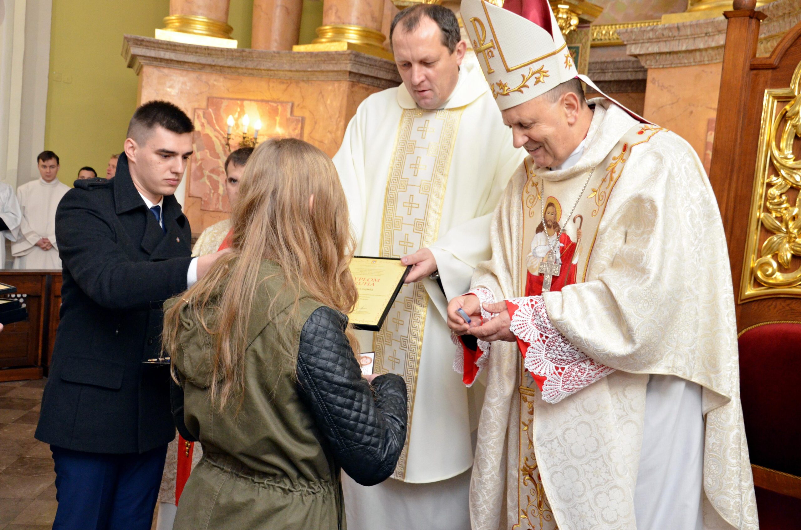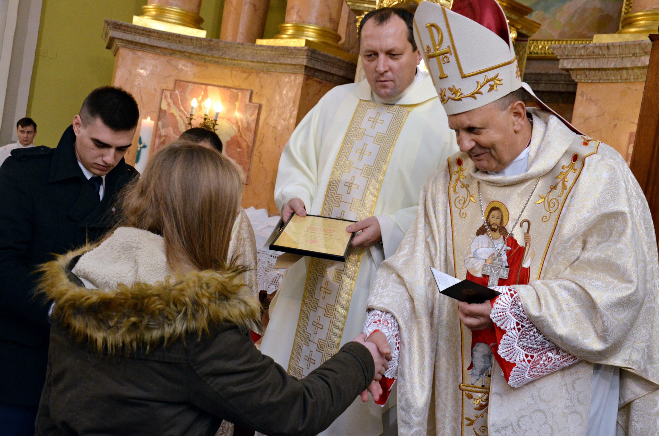 Liturgię ubogaciły dwa miłe akcenty. Zofia Murawska otrzymała odznaczenie Benemertenti za szczególne zasługi i zaangażowanie w działalność Akcji Katolickiej. Natomiast Monika Pietraszko – była prezes KSM stała się honorowym członkiem Stowarzyszenia.