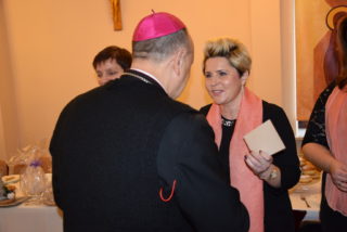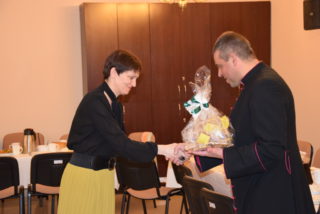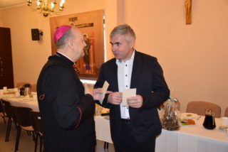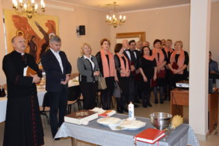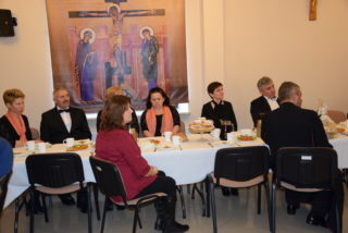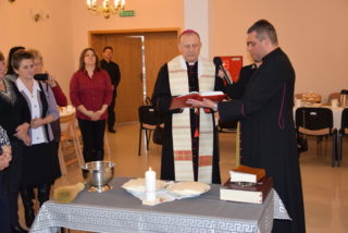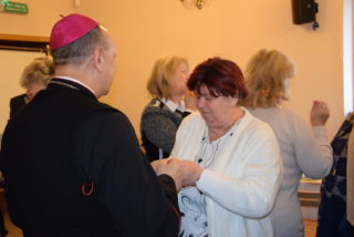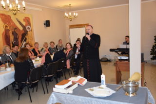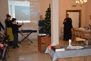 Centralną częścią była wspólna modlitwa i czas dzielenia się opłatkiem. Przy akompaniamencie kolęd i pastorałek, każdy z uczestników miał okazję osobiście złożyć życzenia Księdzu Biskupowi. Moment ten poprzedziło wystąpienie Bożeny Chrząstowskiej – koordynator projektu ASOS, która złożyła życzenia zarówno Księdzu Biskupowi jak i odpowiedzialnemu za projekt ks. Piotrowi Jurczakowi. Kapłani otrzymali od uczestników własnoręcznie wykonane upominki.