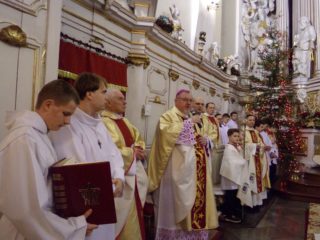 Troska o biel naszych serc, sumień i umysłów wiąże się z tajemnicą przyjścia na świat Syna Bożego, mówił ks. bp Antoni Dydycz podczas pasterki, której przewodniczył w kościele pw. Wniebowzięcia NMP w Siemiatyczach. Pan Bóg pragnie abyśmy sami odkrywali piękno bycie człowiekiem, podkreślał ks. Biskup zwracając się do licznie zgromadzonych wiernych. Wymowa tej tajemnicy, jaką przeżywamy, tajemnicy przyjścia na świat Bożego Dzieciątka, wyraża się w trosce byśmy jako ludzie odnajdowali biel potrzebną człowiekowi w jego wspólnocie, w jego pracy, w jego działalności. Ta biel, to czystość naszych sumień, umiłowanie prawdy, szczerość w odniesieniu do innych, to obecność miłości i to pragnienie, abyśmy razem tworzyli dobro, które składa się na naszą ojczyznę, na kościół a także na nasz osobowy, wewnętrzny rozwój. Dziecię narodzone w Betlejem ukazuje nam godność człowieczeństwa. Jeżeli nawet nie zawsze od razu rozumiemy, co znaczy przyjście na świat Syna Bożego, to gdzieś w głębi naszych umysłów odnajdujemy radość za którą dziękujemy przychodząc na pasterkę mówi Ekscelencja do wiernych uczestniczących w sprawowanej o północy Eucharystii. Ks. Biskup podkreślał też, że dzięki Chrystusowi każdy z nas może być świętym czyniąc dobro i może być geniuszem jeśli tym dobrem będzie dzielić się z innymi.