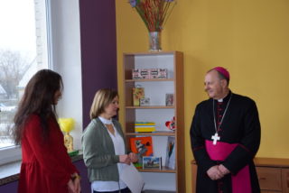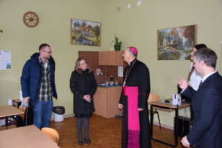 Gospodarze miejsca oprowadzili ks. Biskupa po ośrodku. Zaprezentowali sale, w których prowadzone są różnorodne zajęcia plastyczne, kulinarne, czy ogrodnicze.