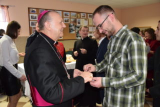 Ks. bp Tadeusz Pikus odwiedził Warsztaty Terapii Zajęciowej w Dołubowie