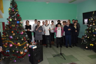 Kontynuacja spotkania miała swoje miejsce w sąsiedniej remizie strażackiej, gdzie uczestnicy podzielili się opłatkiem i słowem świątecznych życzeń. Obecny był miejscowy proboszcz ks. Zenon Bobel oraz przedstawiciele władz samorządowych. Zwieńczeniem była wspólna agapa przy wigilijnych potrawach. Niektóre z nich przygotowali podopieczni.