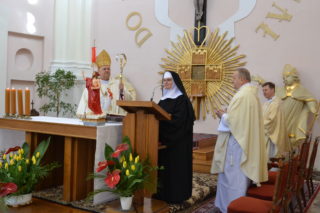 W koncelebrze wzięli udział ks. Kapelan Henryk Kalinowski oraz rzecznik Episkopatu Polski ks. Paweł Rytel – Adrianik. Po zakończeniu Eucharystii zabrała głos Matka Klara Lechoszest, dziękując za obecność i sprawowanie Eucharystii. Skierowała również prośbę do ks. Biskupa o otwarcie Jubileuszowej wystawy zdjęć „Succisa virescit” z okazji 60 lecia odnowienia fundacji Benedyktynek w Drohiczynie. Po dokonaniu symbolicznego otwarcia ks. Biskup oraz wszyscy uczestnicy zwiedzali wystawę. Spotkanie zakończyło wspólne śniadanie w klasztornym refektarzu.