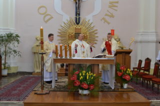 Ks. bp Tadeusz Pikus tradycyjnie już drugiego dnia świąt Zmartwychwstania Pańskiego gościł u Sióstr Benedyktynek w Drohiczynie. Spotkanie rozpoczęła uroczysta Eucharystia o godz. 8.00, której przewodniczył Pasterz diecezji.