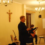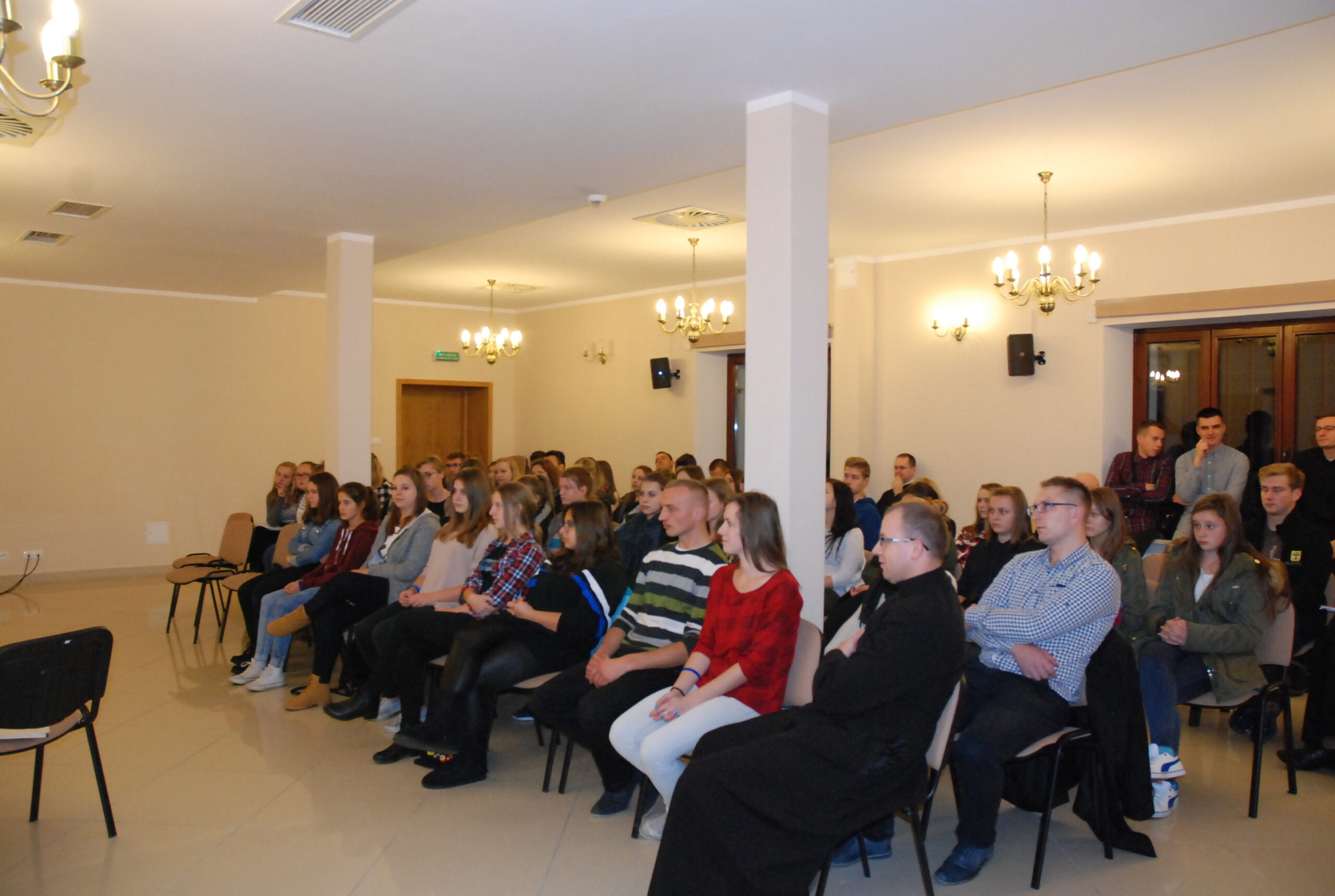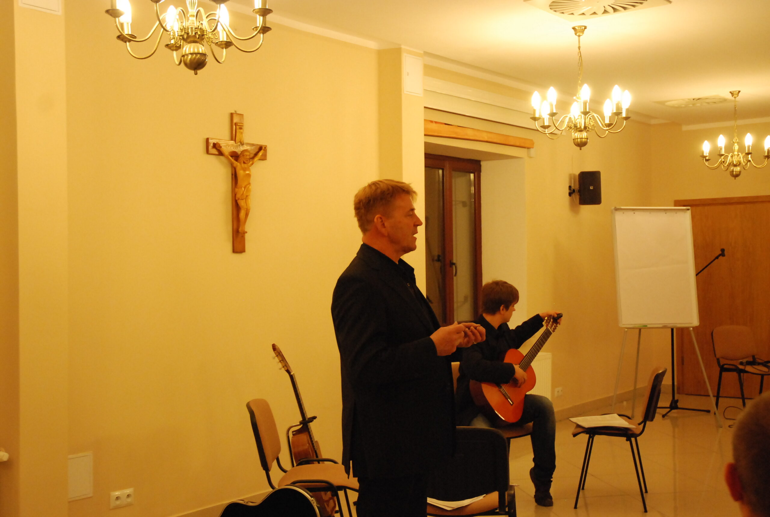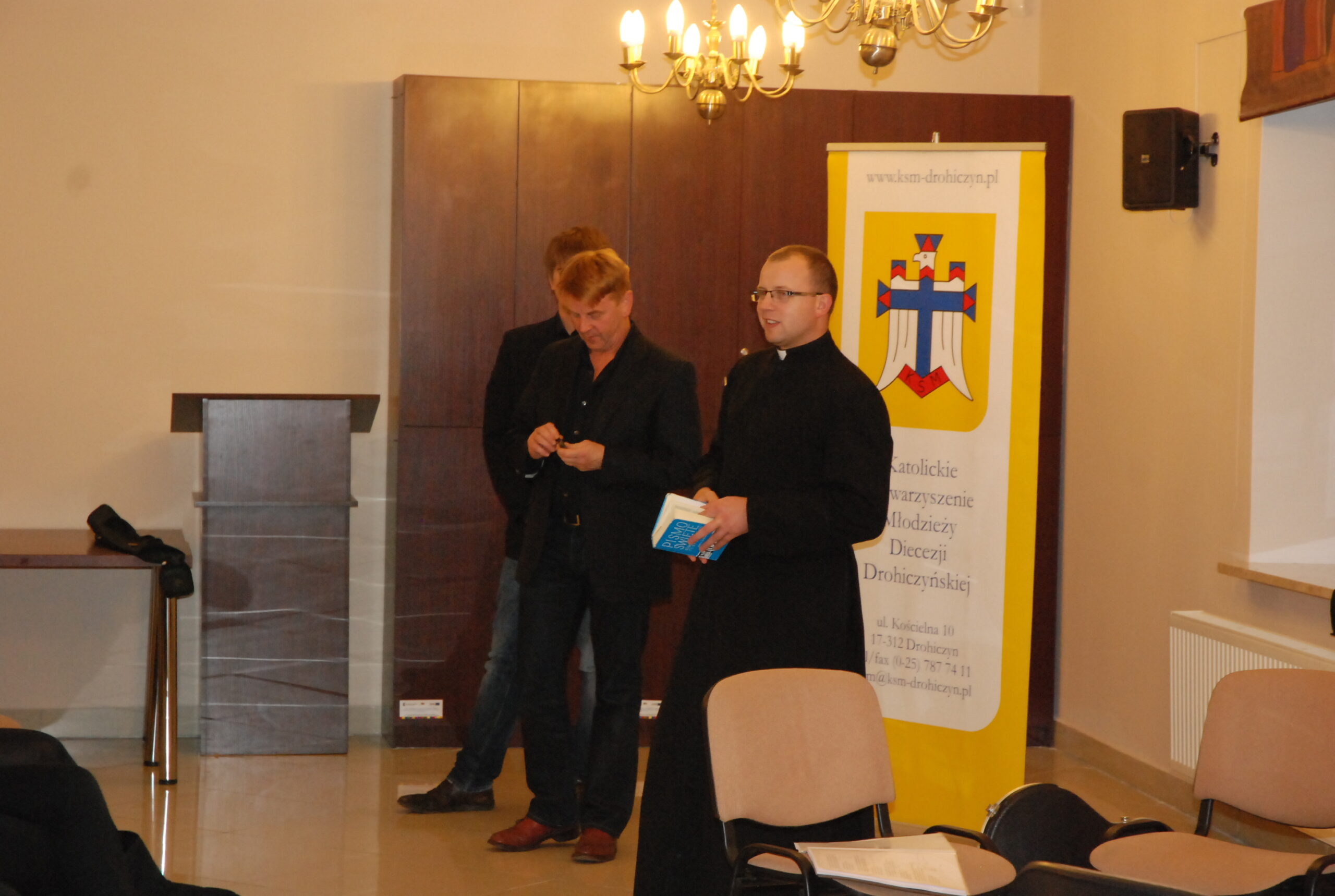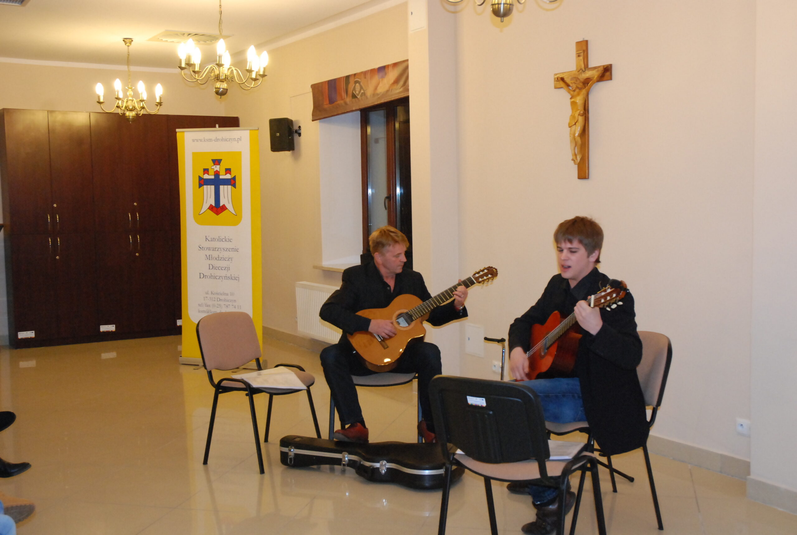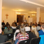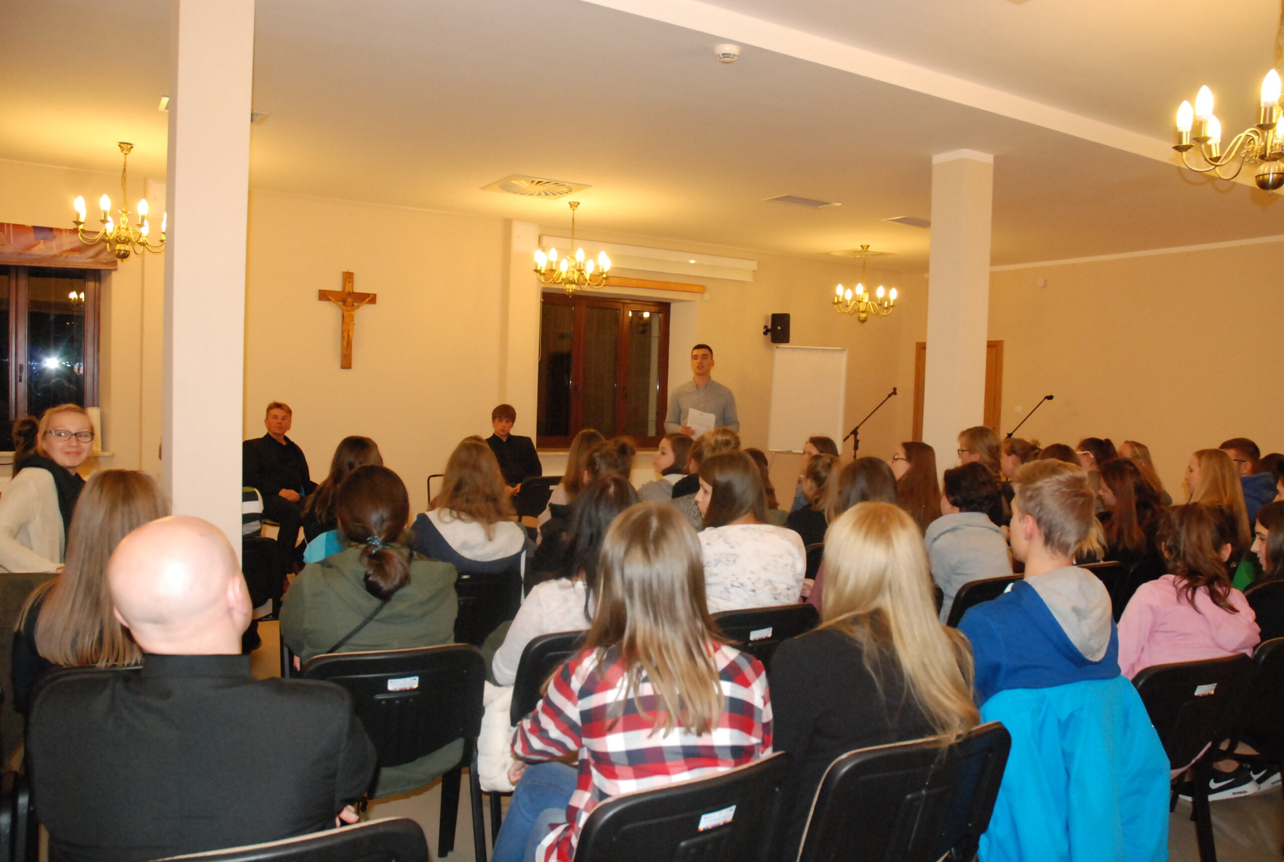 Kolejna część spotkania miała miejsce w Podlaskim Centrum Dialogu, którą rozpoczęliśmy od odczytania przypowieści o talentach. Spotkanie ubogaciło świadectwo zaproszonego gościa Zbigniewa Derewońko, człowieka o niezwykłym życiu i powołaniu, a przy tym o różnych życiowych przygodach. Świadectwo przeplatane było śpiewem utworów Jacka Kaczmarskiego, które razem z naszym gościem śpiewał syn Dawid. My – młodzi byliśmy pod dużym wrażeniem wykonań, czego wyrazem były owacje na stojąco.