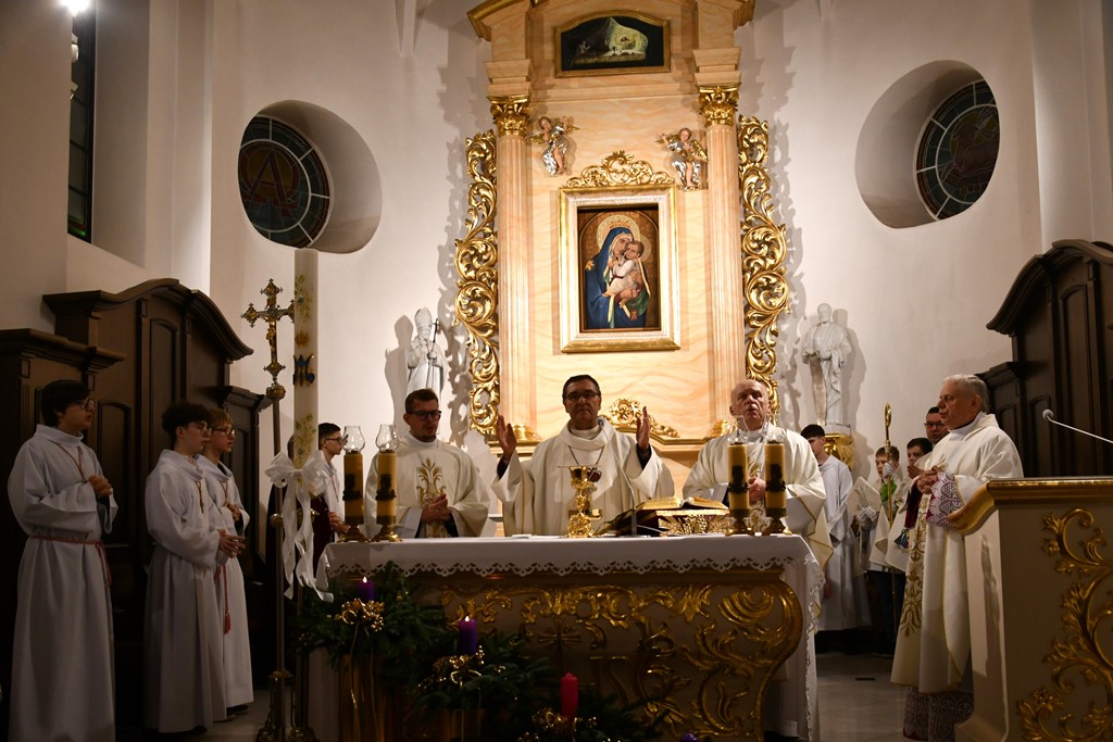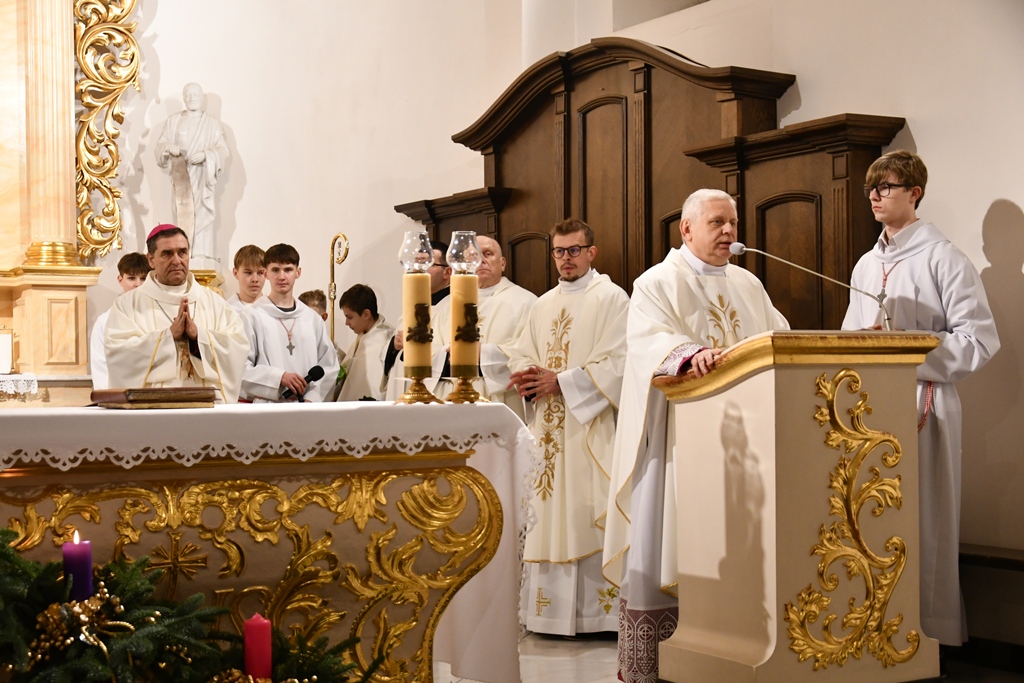 Słowo powitania skierował miejscowy proboszcz ks. kan. Zbigniew Domirski. Przy ołtarzu stanęli również: ks. prał. Henryk Polak oraz ks. Patryk Nagórny.