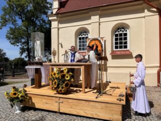 Biskup nawiązał także do 104. rocznicy cudu nad Wisłą, która miała kluczowe znaczenie dla Polski i Europy. Ukazał interwencję Boga za przyczyną Matki Wniebowziętej i zachęcił, byśmy i dziś ochoczo uciekali się, wznosząc ufne modlitwy i prosili o wstawiennictwo Królową.