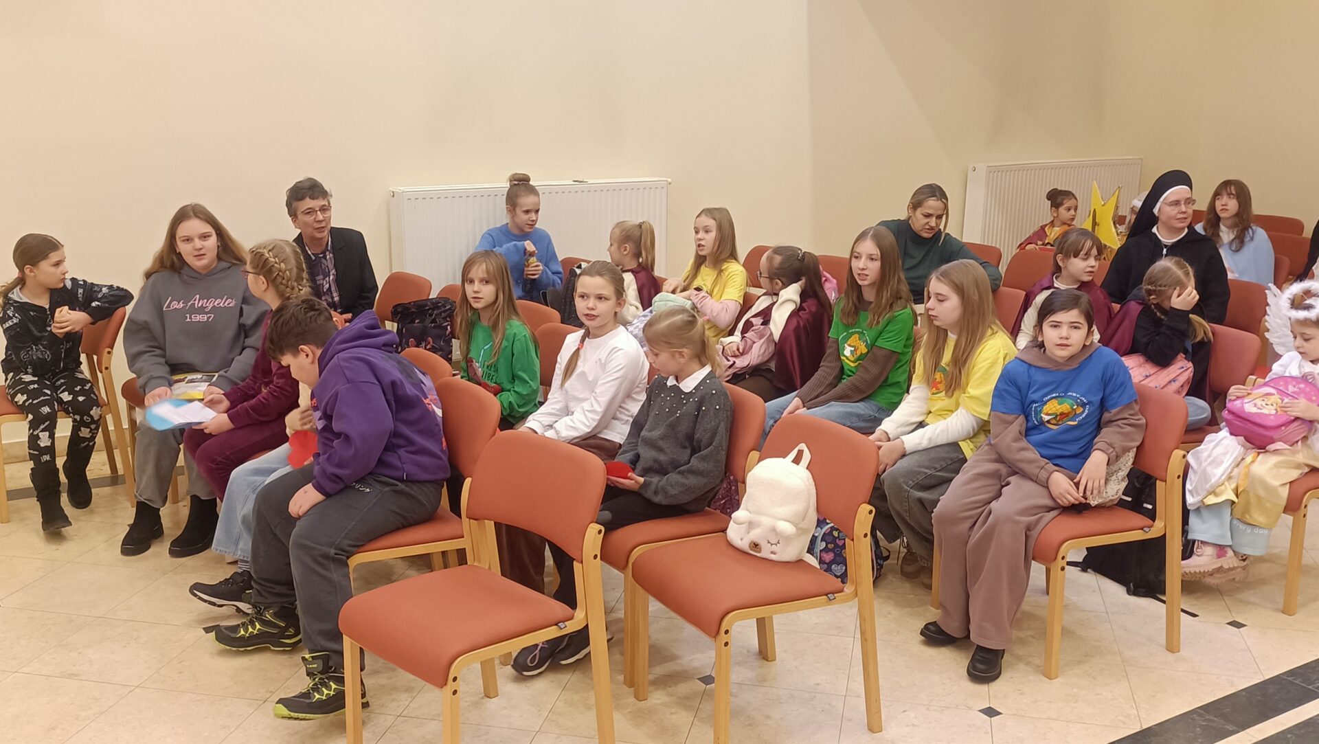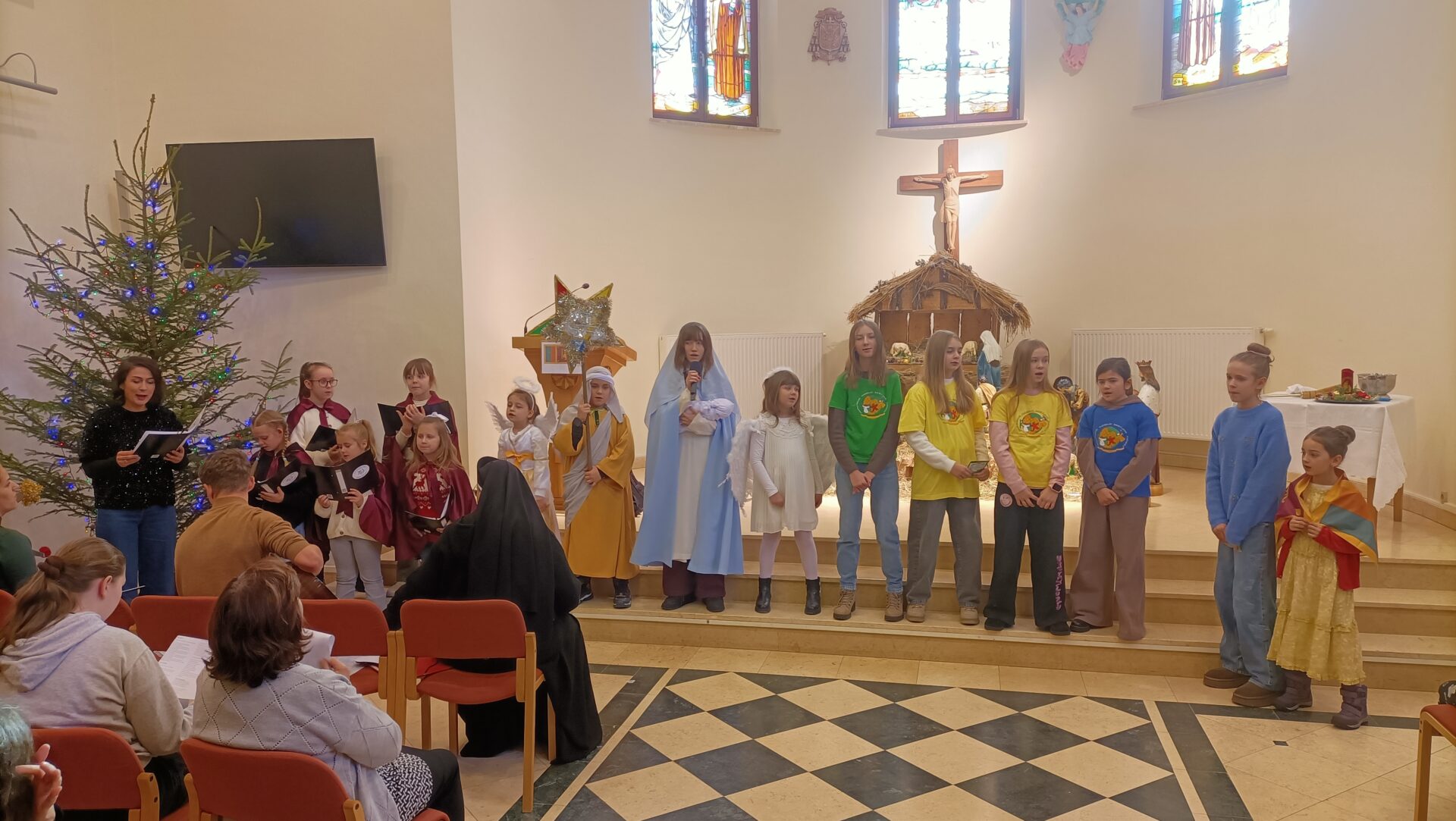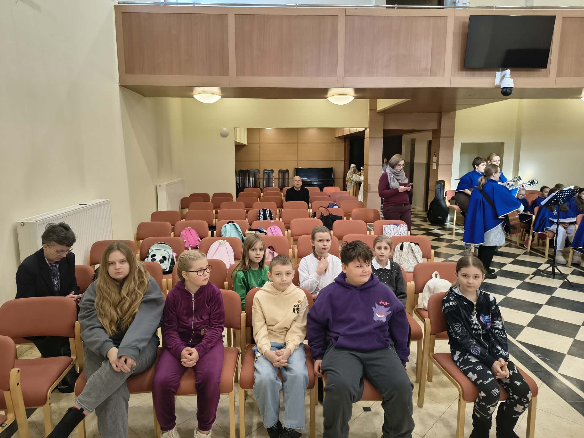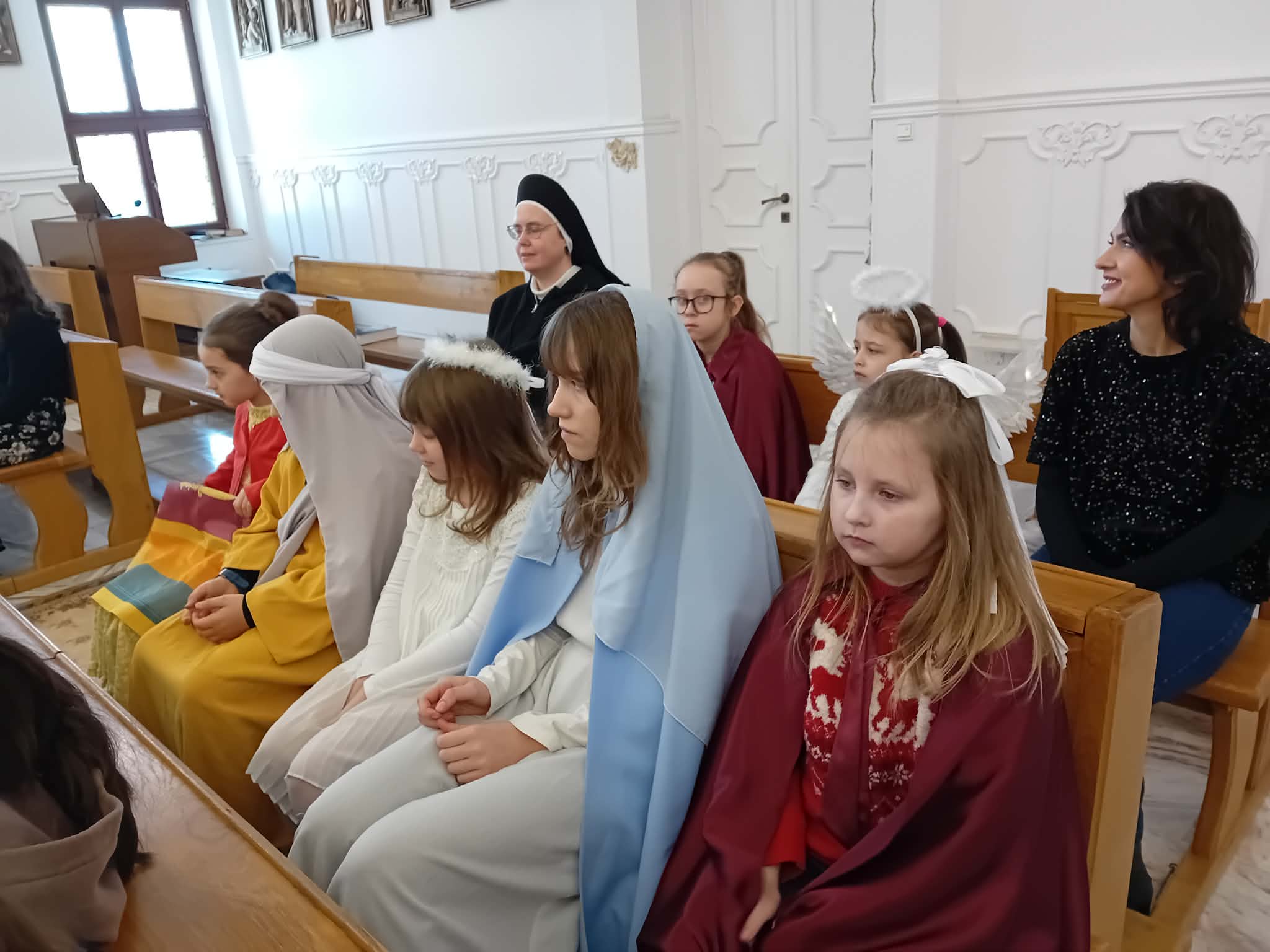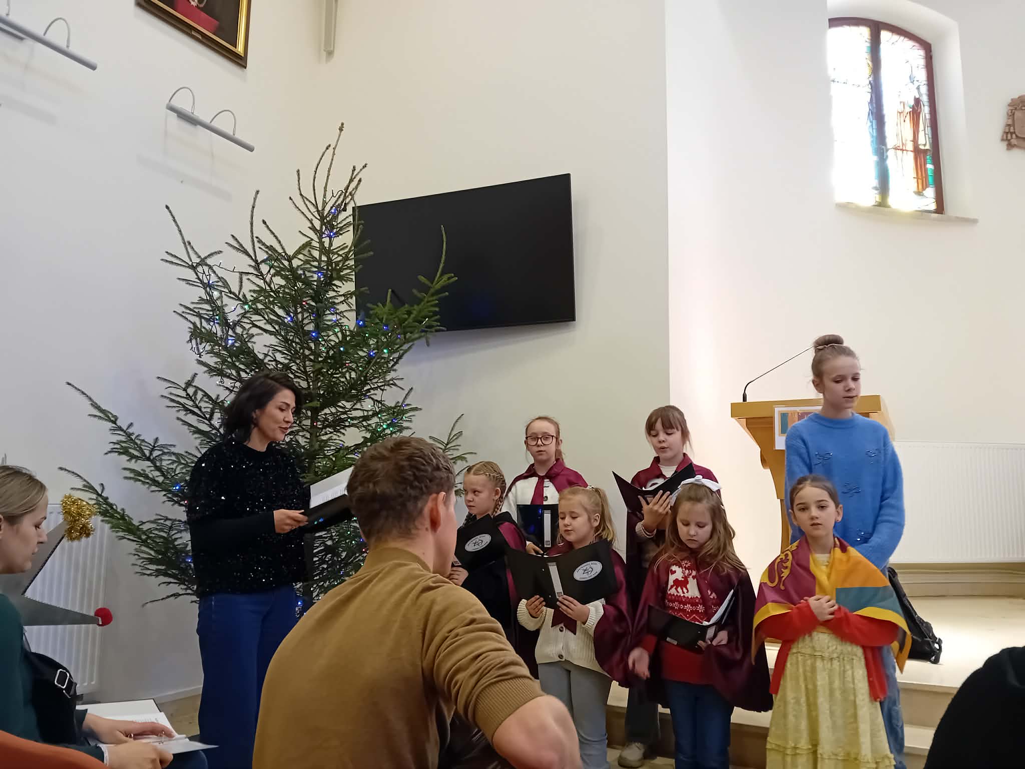 Następnie wszyscy przeszli do auli seminaryjnej, gdzie obejrzeli scenkę kolędniczą, którą przedstawiły dzieci z Bielska Podlaskiego. Wszyscy w radosnej atmosferze wspólnie śpiewali kolędy. Świąteczne spotkanie misyjne zakończył poczęstunek.