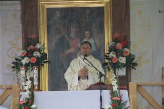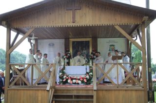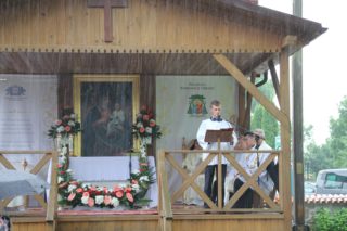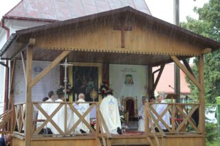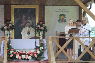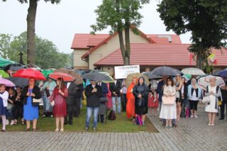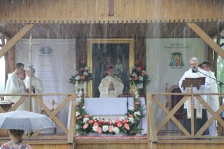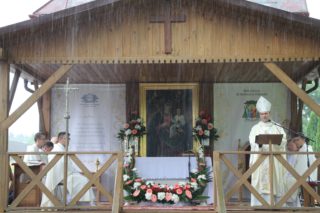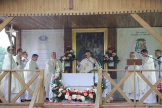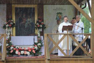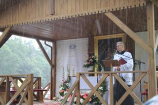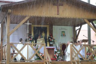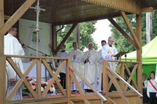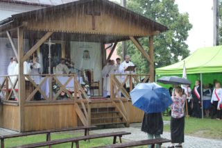 Dość intensywnie padający deszcz nie przeszkodził w modlitewnym skupieniu. Uroczystej Eucharystii na placu przykościelnym przewodniczył i słowo Boże wygłosił ks. bp Piotr Sawczuk.