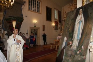 Przed Eucharystią ks. Biskup poświecił odnowiony obraz Matki Bożej z Lourdes, który stanowi przesłonę cudownego wizerunku Matki Bożej Ostrożańskiej.
