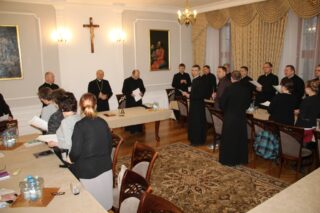 Spotkanie rozpoczęła wspólna modlitwa Liturgii Godzin. Uczestniczył w niej biskup drohiczyński Tadeusz Pikus oraz wikariusze generalni diecezji i pracownicy Kurii Diecezjalnej.