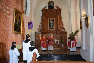 Liturgia rozpoczęła się obrzędem pobłogosławienia palm i odczytaniem fragmentu Ewangelii opowiadającym o uroczystym wjeździe Chrystusa do Jerozolimy. Skromna procesja przeszła przez nawę boczną do głównego ołtarza kościoła katedralnego.