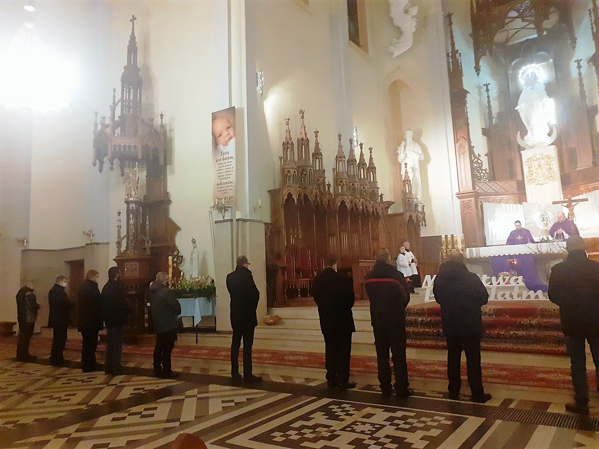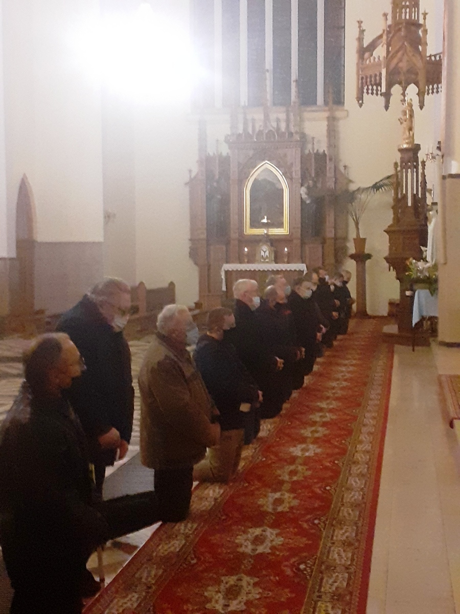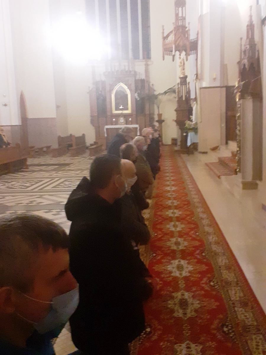Pełni pokory, a zarazem odważni, jak św. Józef, nie bojący się nowego wyzwania, uklękli na stopniach prezbiterium, aby zgodnie z obowiązującym Ceremoniałem Żywego Różańca, złożyć przyrzeczenie. Należy dodać, że dwóch panów łączyło się online, gdyż pracują poza Sokołowem Podlaskim i przyjazd był niemożliwy. Po złożonym przyrzeczeniu i błogosławieństwie ks. Łukasza Borzęckiego, parafialnego opiekuna Kół Różańcowych, odbyło się krótkie spotkanie, podczas którego otrzymali poświęcone obrazki św. Józefa i pierwsze tajemnice różańcowe. Patron wybrany nieprzypadkowo, w Roku św. Józefa i w przeddzień rozpoczęcia Roku Rodziny. Nowi członkowie reprezentują różne zawody i różny wiek, a połączył ich Różaniec św. Cóż może być piękniejszego szczególnie teraz, w tych trudnych czasach? W historii parafii to pierwsze męskie Koło, ale nie jedyne, którego patronem jest św. Józef. Pierwsze powstało w 1946 r., a drugie w 1978r.