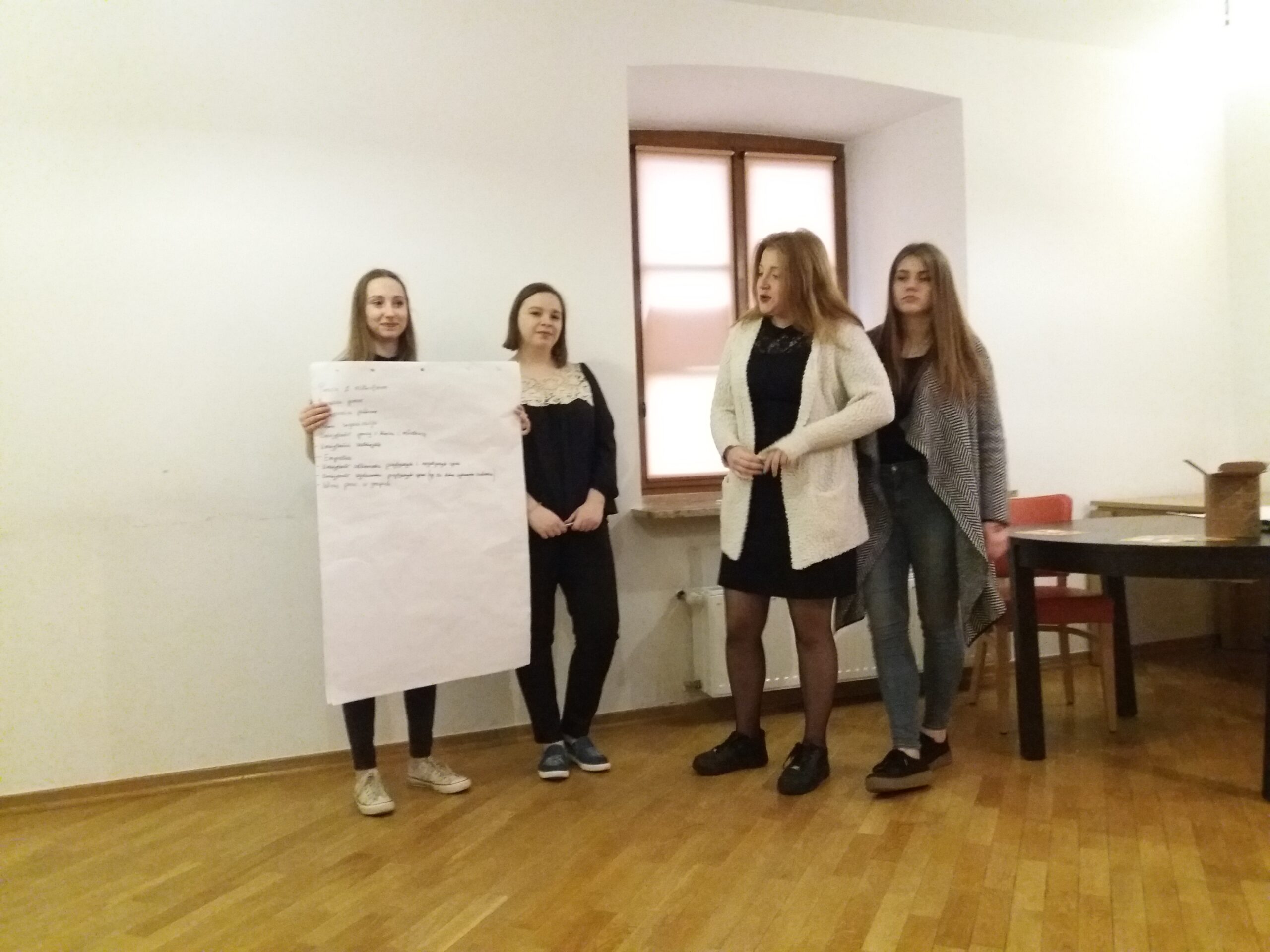 W piątkowe popołudnie wszyscy uczestnicy zgromadzili się na szkoleniu. Tematem warsztatów były media oraz patriotyzm. Pierwszego dnia naszym gościem był ks. Marcin Gołębiewski – dyrektor Centrum Informacji Diecezji Drohiczyńskiej. Prelegent zaprezentował nam rolę mediów i rozwinął pojęcie depeszy informacyjnej. Młodzież pracowała w grupach nad własną depeszą dotyczącą ostatnich wydarzeń w swoich parafiach, oddziałach czy szkołach.