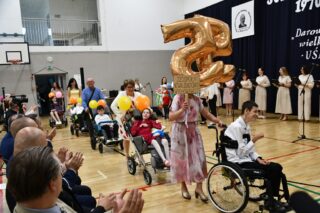 Biskup Piotr Sawczuk 17 czerwca 2025 r. w węgrowskiej bazylice przewodniczył Mszy św. z okazji jubileuszu 55-lecia Specjalnego Ośrodka Szkolno-Wychowawczego im. Kornela Makuszyńskiego.