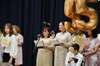 Druga część spotkania miała miejsce w budynku ośrodka. Słowa powitania i wprowadzenia skierowała dyrektor ośrodka Hanna Kasperowicz oraz wicedyrektor Agnieszka Wiśniewska. Licznie przybyli goście mieli okazję zobaczyć specjalnie przygotowany film prezentujący dzieje ośrodka od momentu jego założenia w 1970 r. Wspominano kolejnych dyrektorów: Zuzannę Rzącę, Martę Joniuk, Janinę Żołędowską, Gabriela Szarugę oraz Hannę Kasperowicz. Ukazano, jak na przestrzeni lat ośrodek rozwijał się i dostosowywał do potrzeb wychowanków. Dyrektor ośrodka wielokrotnie podkreślała, że jest to placówka, która ma duszę, a tą duszą jest konkretny człowiek. Jest to miejsce o otwartym sercu dla każdego.