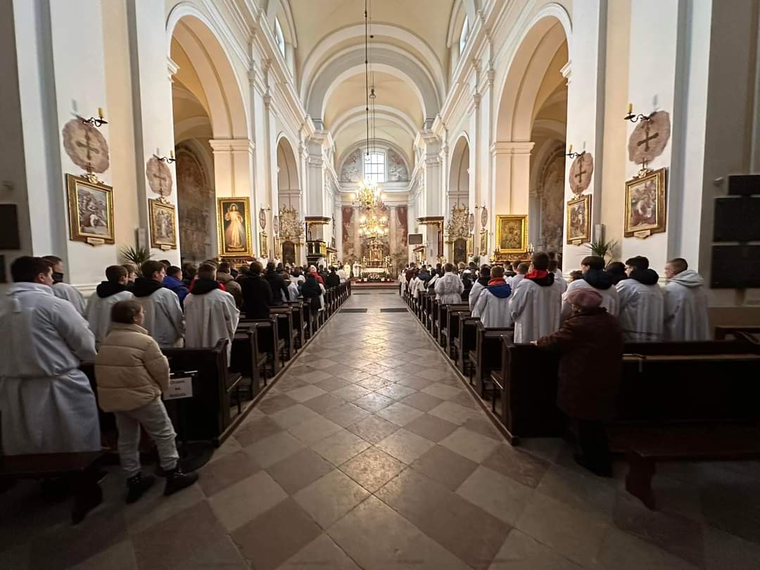 Turniej rozpoczął się wspólną Mszą Świętą w węgrowskiej Bazylice, podczas której modliliśmy za całą rodzinę ministrancką w naszej diecezji. Ksiądz Prałat Leszek Gardziński, jako delegat księdza biskupa, w homilii podkreślał wartość wspólnego spotkania i znaczenie Eucharystii w życiu każdego ministranta.
