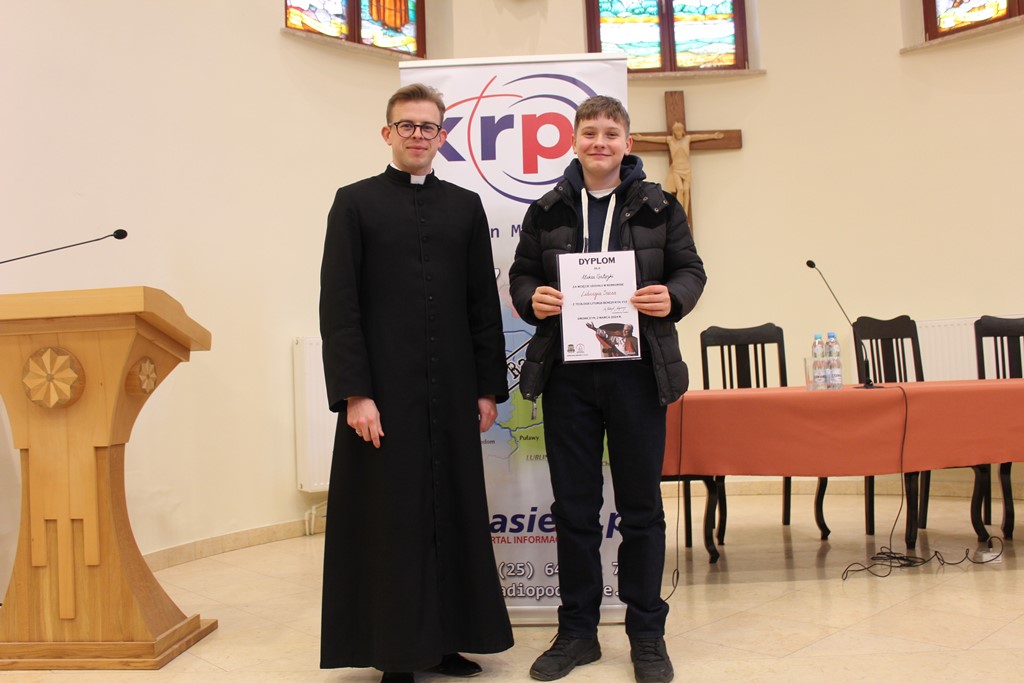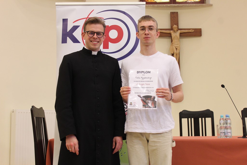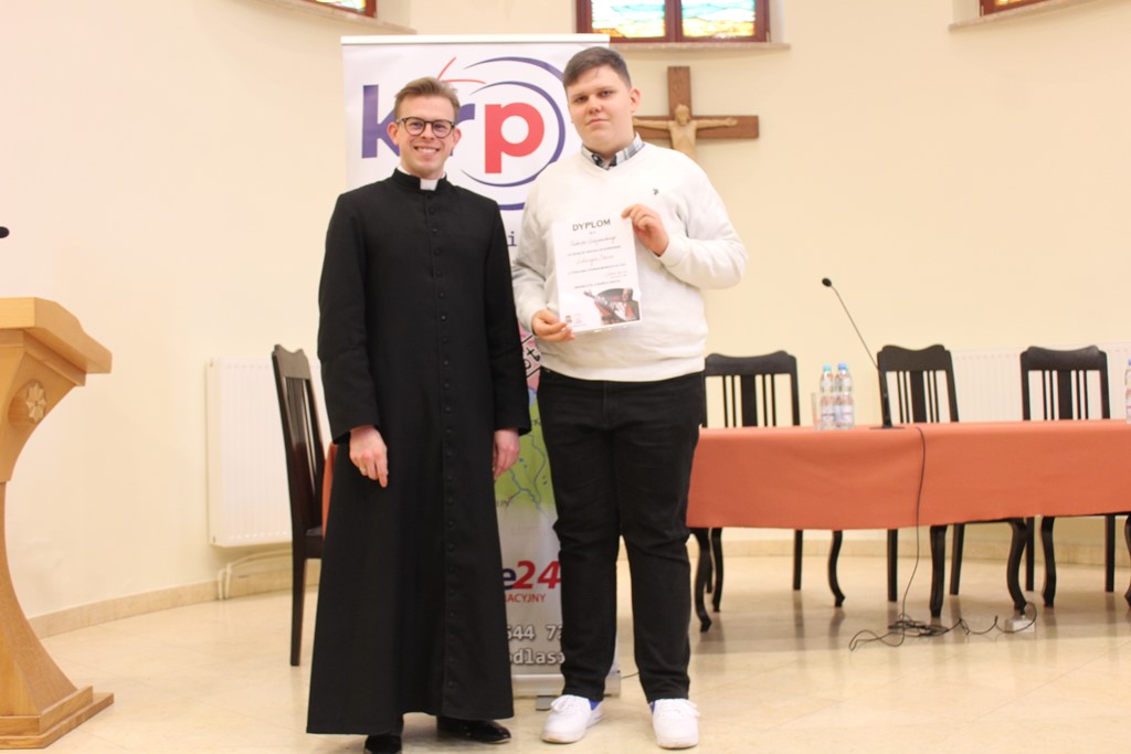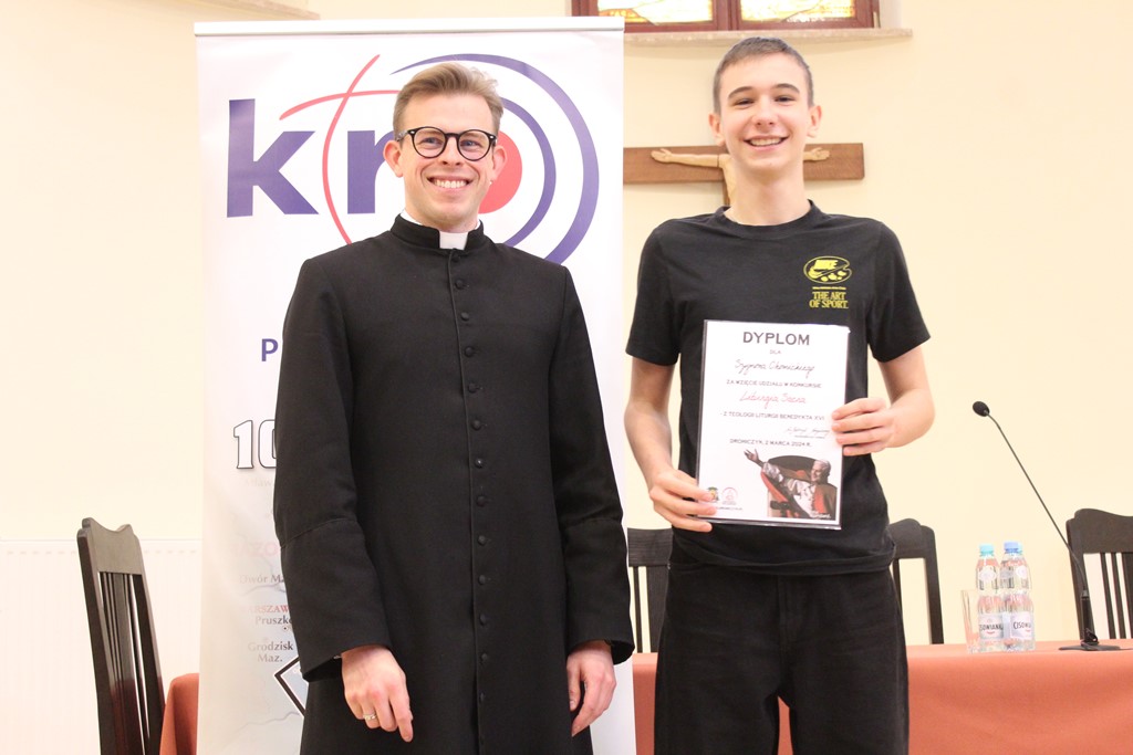 Drugie miejsce w konkursie zajął Mateusz Tyborowicz z parafii św. Andrzeja Boboli w Siemiatyczach a trzecie Kacper Górski z parafii Św. Wawrzyńca w Korytnicy. Uczestnicy musieli wykazać się wiedzą na temat Katechizmu Kościoła Katolickiego i nauczania papieża Benedykta XVI.