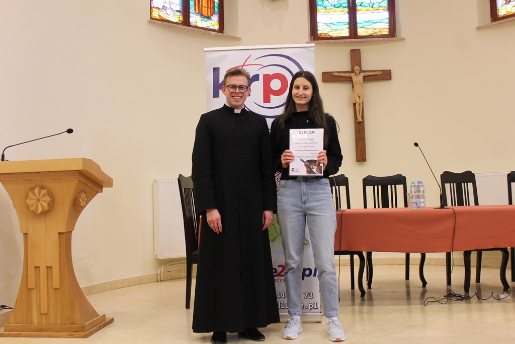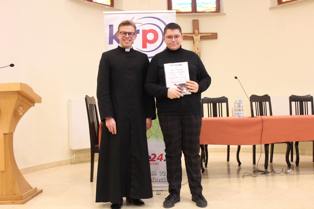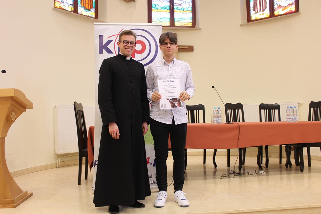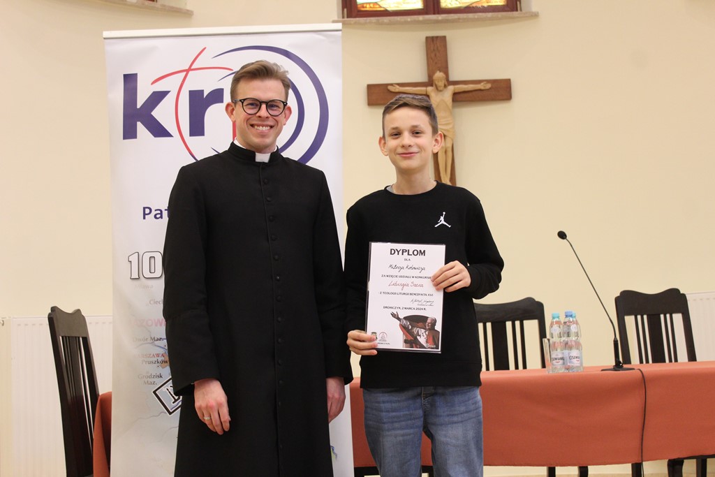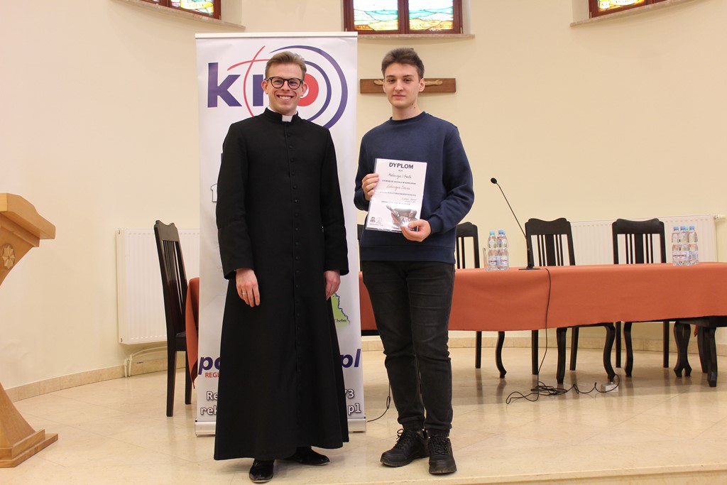 Drugie miejsce w konkursie zajął Mateusz Tyborowicz z parafii św. Andrzeja Boboli w Siemiatyczach a trzecie Kacper Górski z parafii Św. Wawrzyńca w Korytnicy. Uczestnicy musieli wykazać się wiedzą na temat Katechizmu Kościoła Katolickiego i nauczania papieża Benedykta XVI.