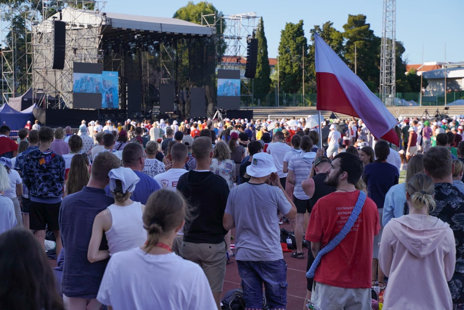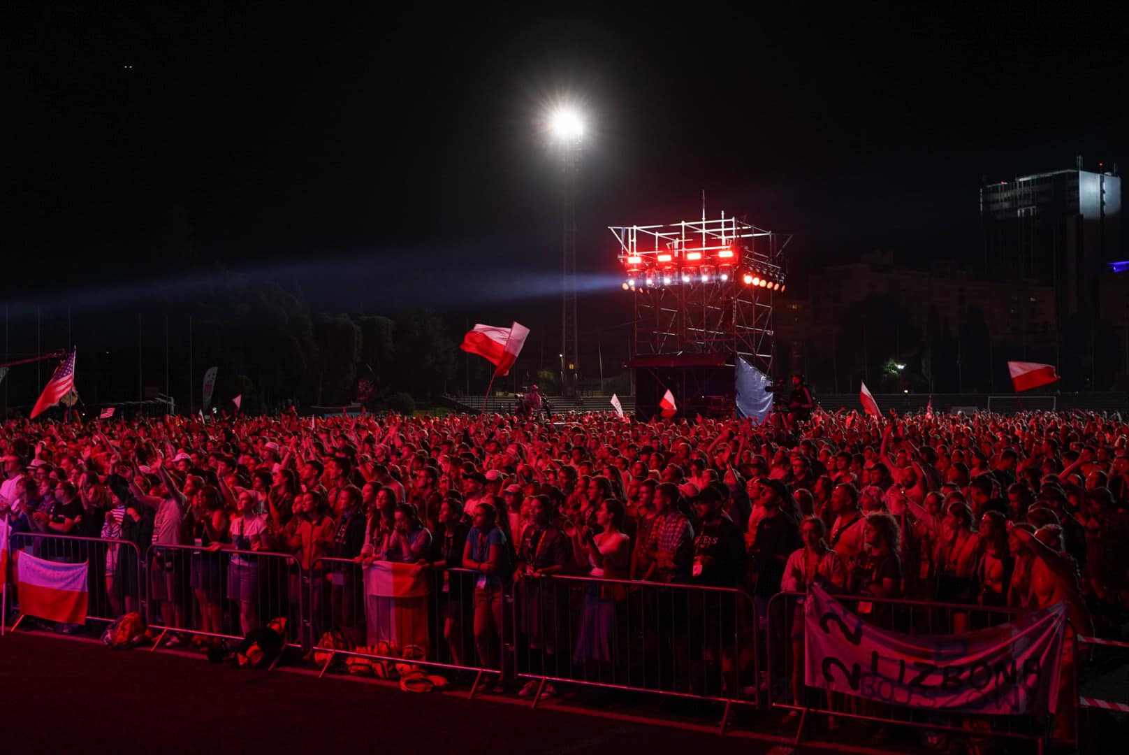 Na „Polskiej Lizbonie” młodzi łączyli się modlitewnie z Ojcem Świętym. Liczne grupy z polski zgromadziły się na Stadionie 1 Maja, aby wspólnie przeżywać drogę krzyżową podczas transmisji online. Droga krzyżowa odbywała się w tym czasie w Parku Edwarda w Lizbonie, gdzie zgromadziło się około 800 tysięcy osób.