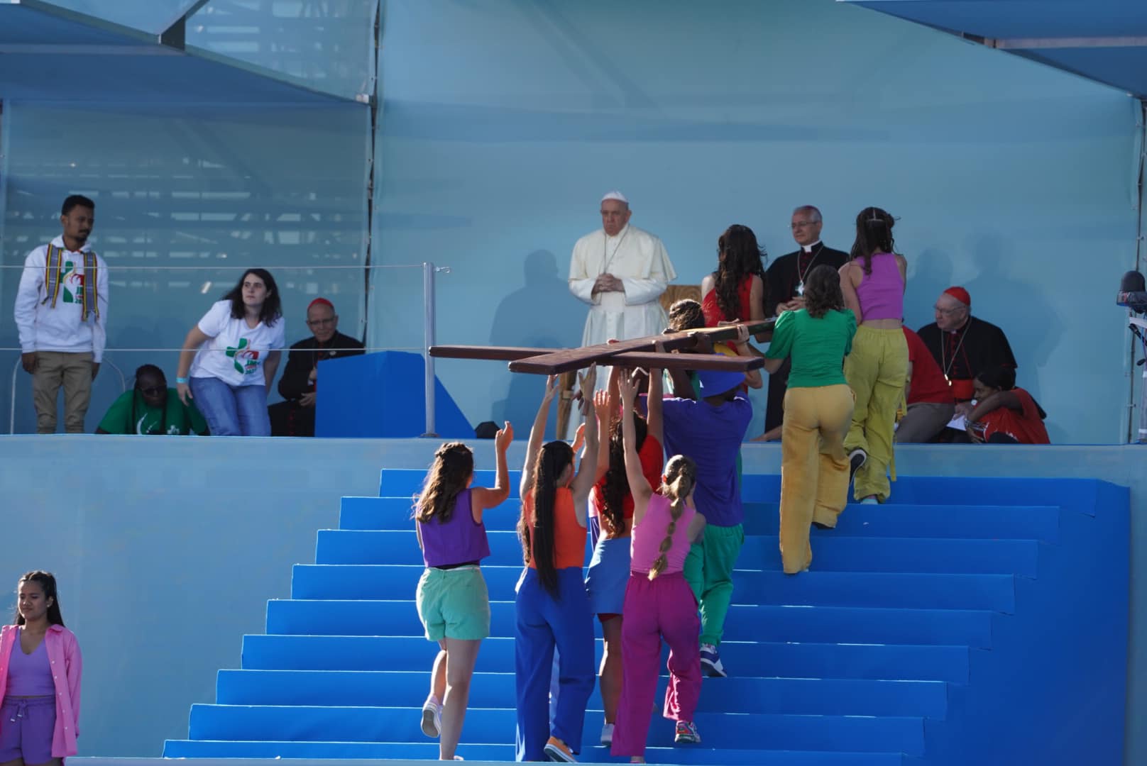 Niewątpliwie przyjazd Papieża Franciszka do parku Edwarda VII w stolicy Portugalii był niezwykłym przeżyciem dla młodych, którzy zgromadzili się na uroczystości powitalnej. Mimo zmęczenia upałem, przywitali oni Papieża Franciszka z ogromną radością i entuzjazmem.