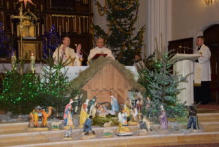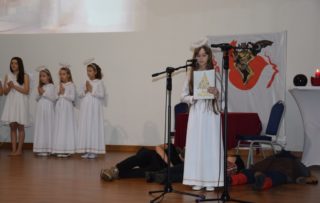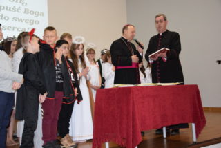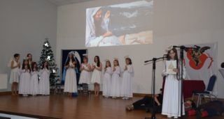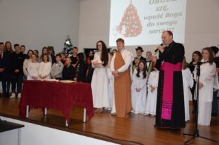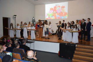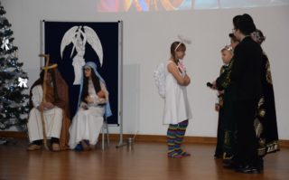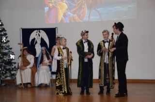Po zakończonej Eucharystii, wszyscy udali się do Miejsko – Gminnego Ośrodka Kultury. Jan Słomiak – burmistrz Kosowa Lackiego serdecznie przywitał przybyłych gości, na czele z ks. Biskupem, oraz podkreślił rolę sołtysów w społecznościach lokalnych. Następnie zaprosił do obejrzenia przedstawienia bożonarodzeniowego. Jasełka zostały zaprezentowane przez uczniów Szkoły Podstawowej w Kosowie Lackim, pod czujnym okiem: p. M. Zakrzewskiej, p. A. Ajdys, p. B. Mazurczak. Inscenizacja przyjścia na świat Zbawiciela, wprowadziła wszystkich w uroczysty nastrój. Nie zabrakło motywu walki dobra ze złem, wędrówki Trzech Króli, przybycia pastuszków do stajenki z zastępami aniołów. To wszystko zostało wzbogacone o pięknie wykonane kolędy i pastorałki oraz żywą i dynamiczną grę aktorską. Ks. bp z uśmiechem dodał, że niespodziewanym zwrotem akcji było udzielenie pomocy aniołkowi, w znalezieniu drogi, przez diabełka, a tym samym jego odejście od złego.