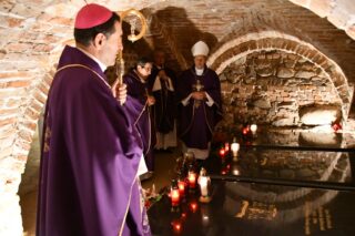 Po Eucharystii biskupi oraz kapłani zeszli do podziemi katedry, gdzie spoczywają bp Kazimierz Bukraba, inf. Michał Krzywicki, bp Władysław Jędruszuk, oraz ks. Jan Wasilewski. Tam odśpiewano modlitwę Anioł Pański oraz zapalono znicze.