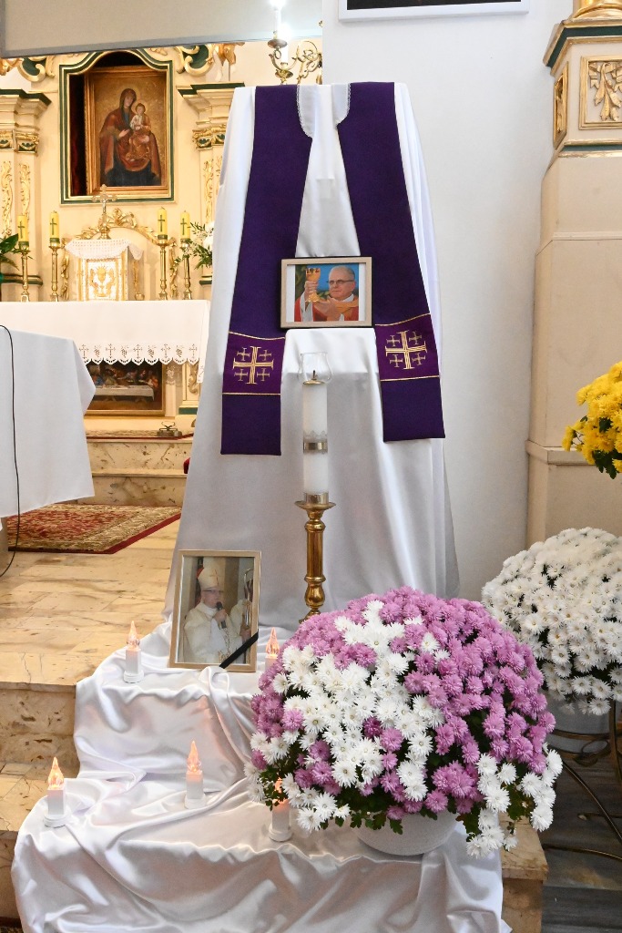 Proboszcz ks. Roman Smuniewski przedstawił w kazaniu najważniejsze fakty z życia zmarłego biskupa Jana Wilka.