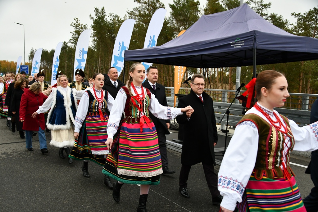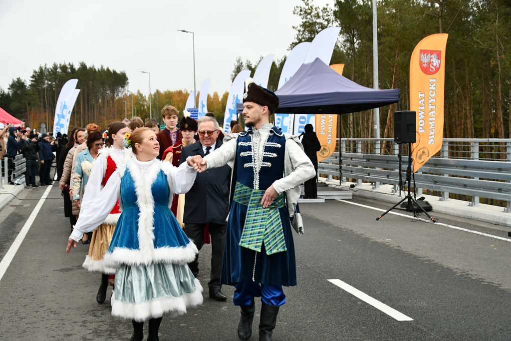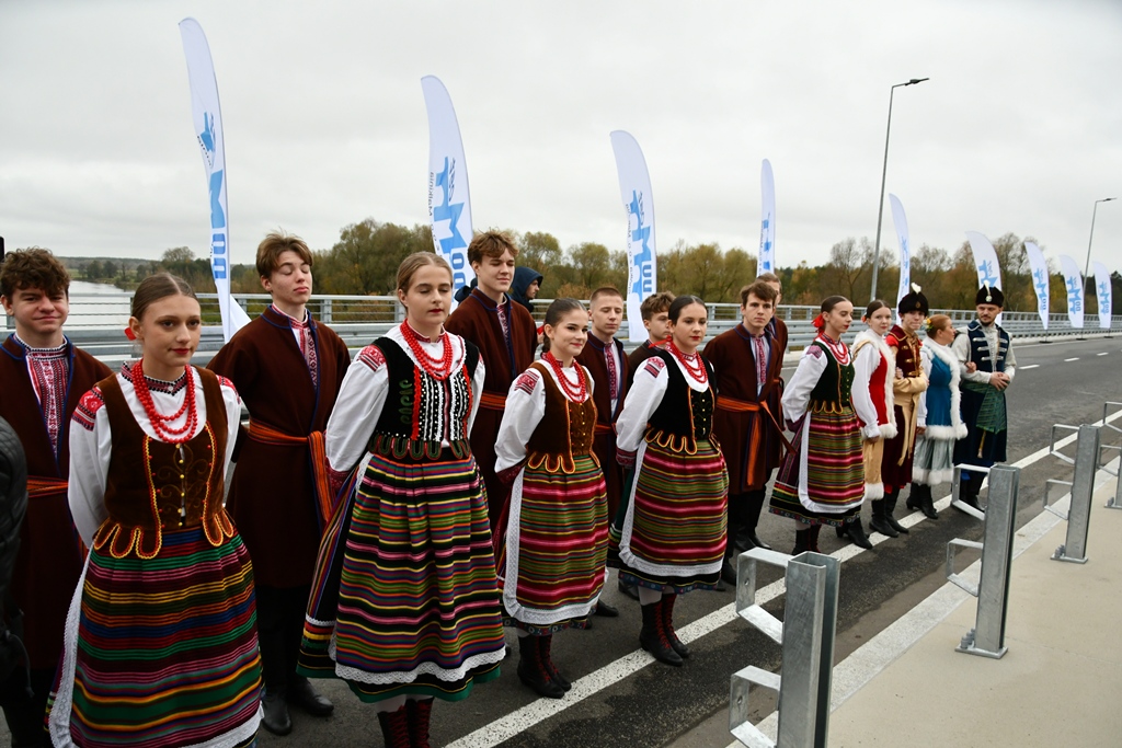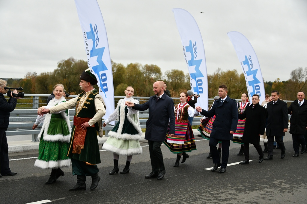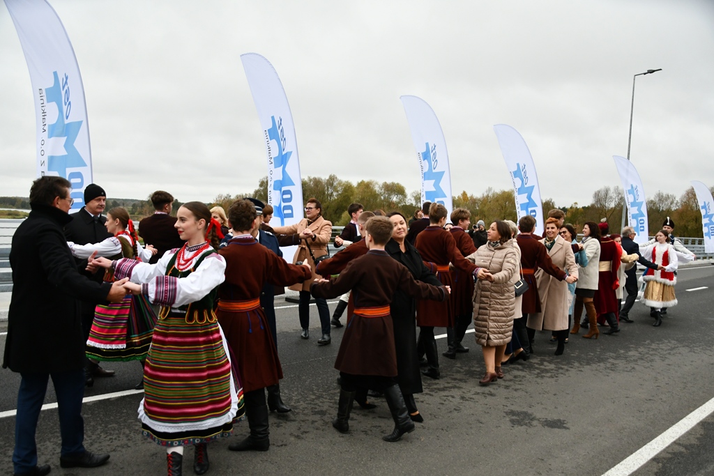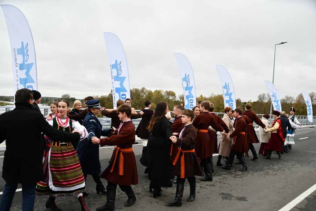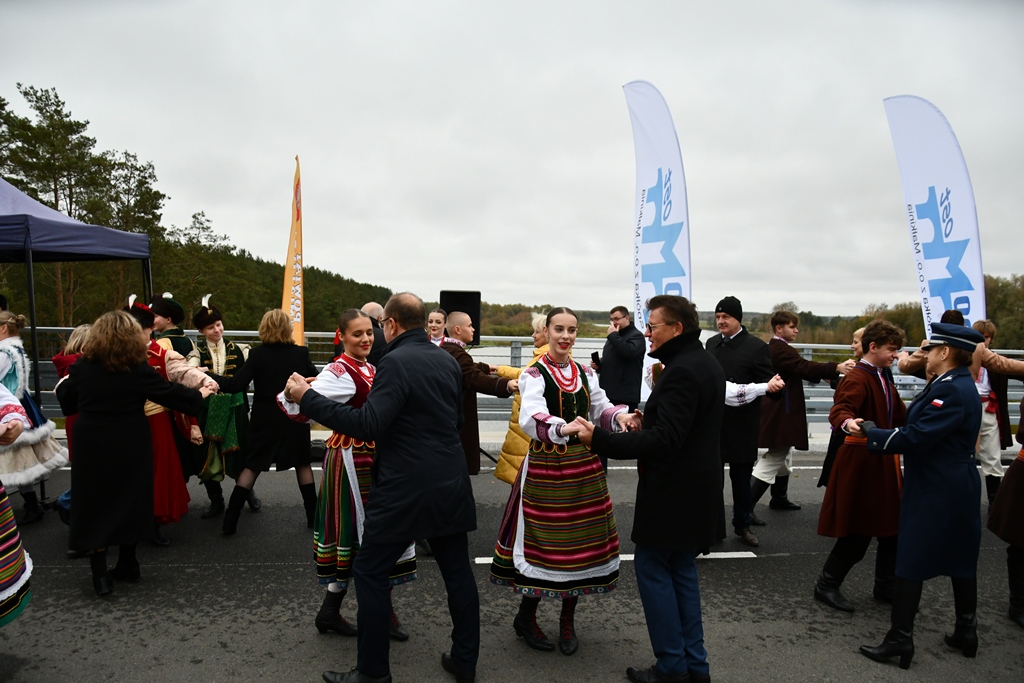 Dalsza część uroczystości miała miejsce na moście. Zanim oddano głos zaproszonym, miała miejsce ciekawa część artystyczna. Członkowie trzech Zespołów Pieśni i Tańca: Małe Podlasie, Kurpie Zielone oraz Sokołowianie zaprosili przybyłych gości do wspólnego zatańczenia poloneza. Młodzi artyści w barwnych strojach w rytm poloneza tanecznym krokiem przemierzali nowy most.