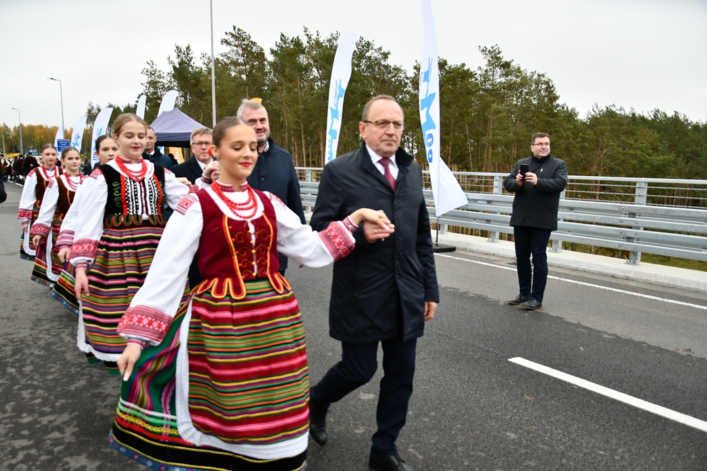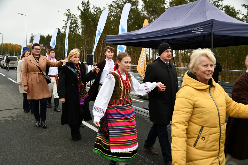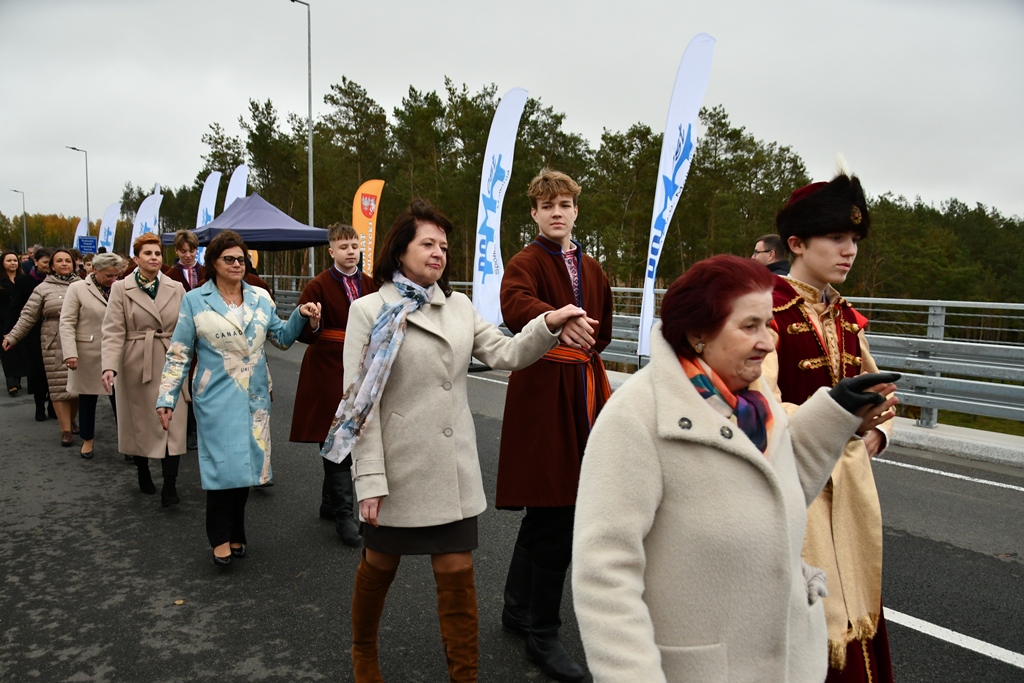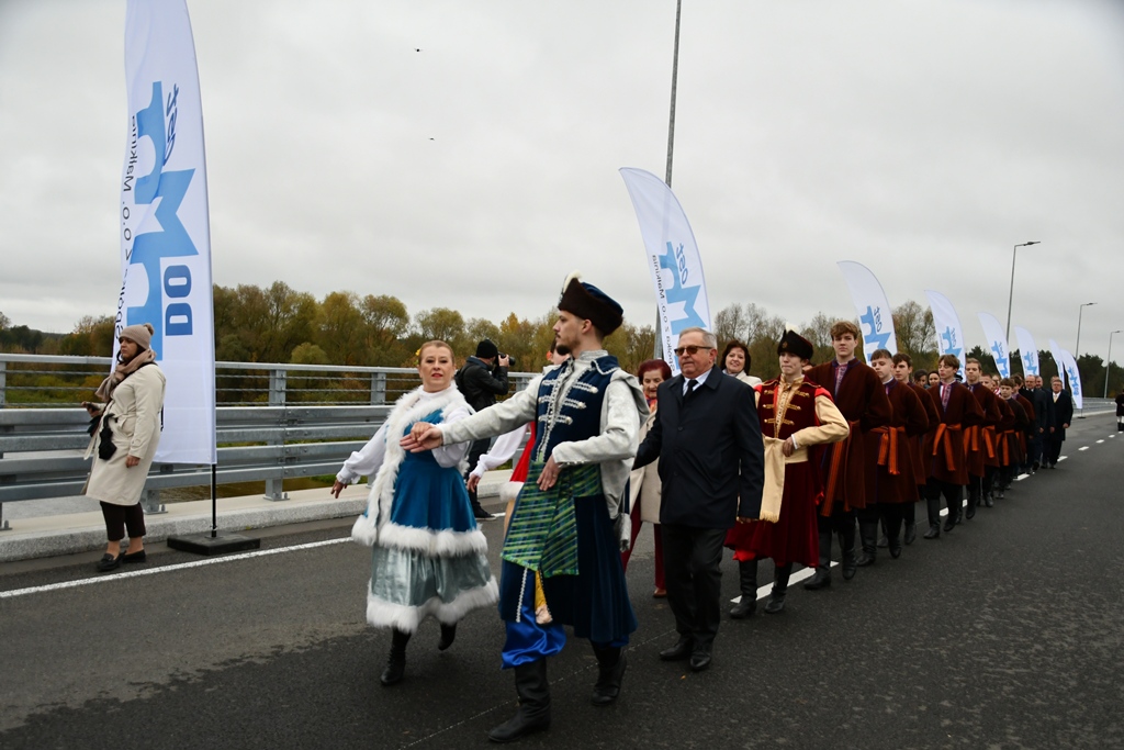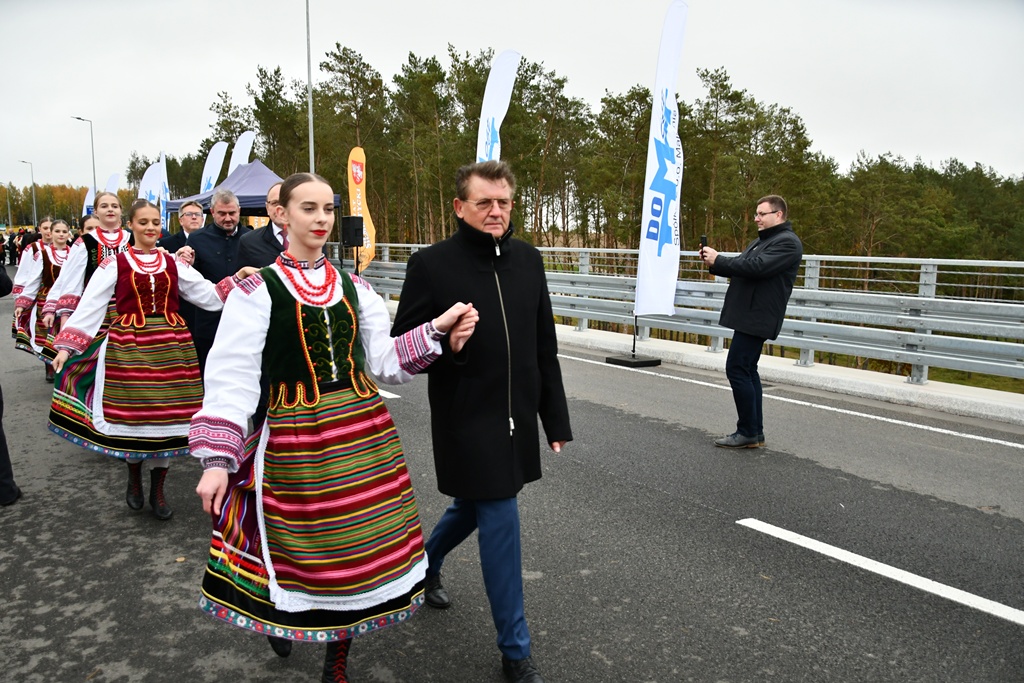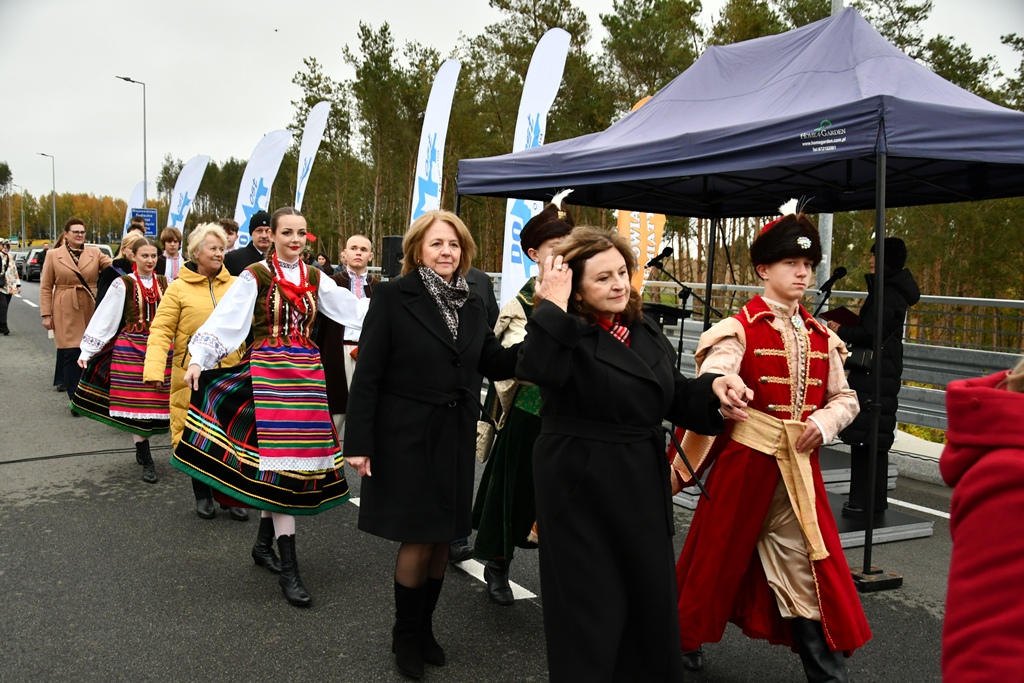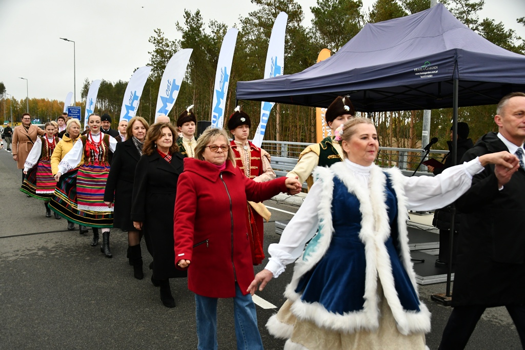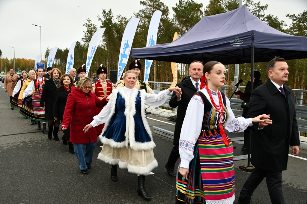 Dalsza część uroczystości miała miejsce na moście. Zanim oddano głos zaproszonym, miała miejsce ciekawa część artystyczna. Członkowie trzech Zespołów Pieśni i Tańca: Małe Podlasie, Kurpie Zielone oraz Sokołowianie zaprosili przybyłych gości do wspólnego zatańczenia poloneza. Młodzi artyści w barwnych strojach w rytm poloneza tanecznym krokiem przemierzali nowy most.
