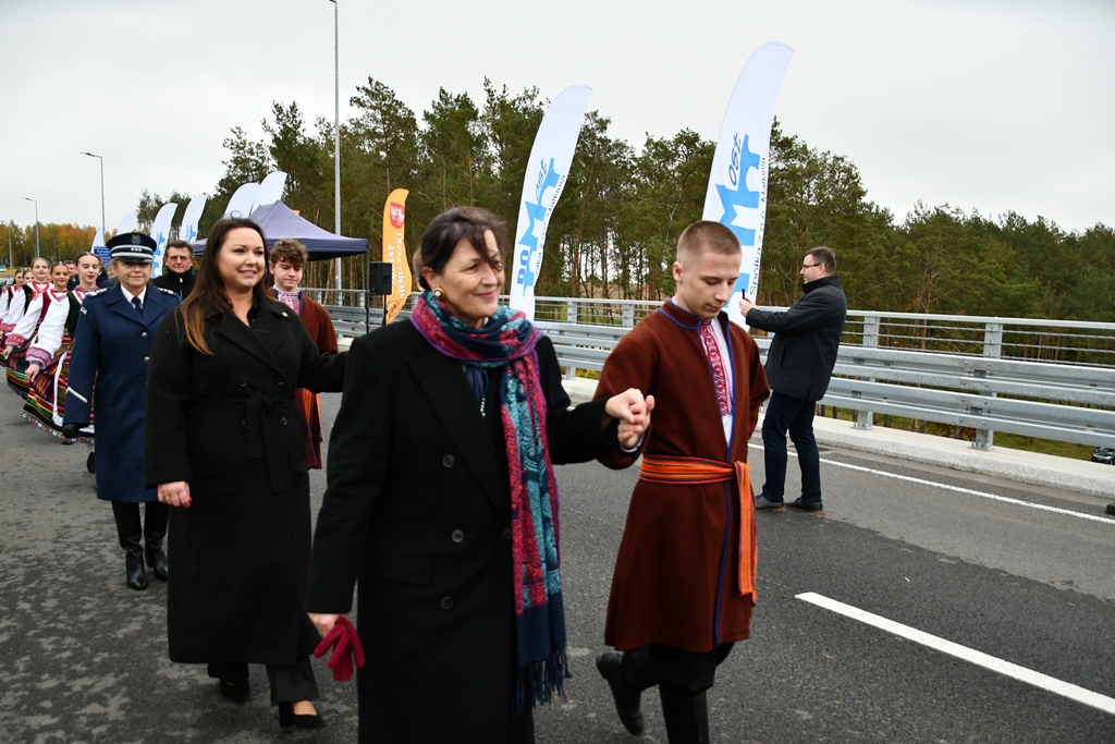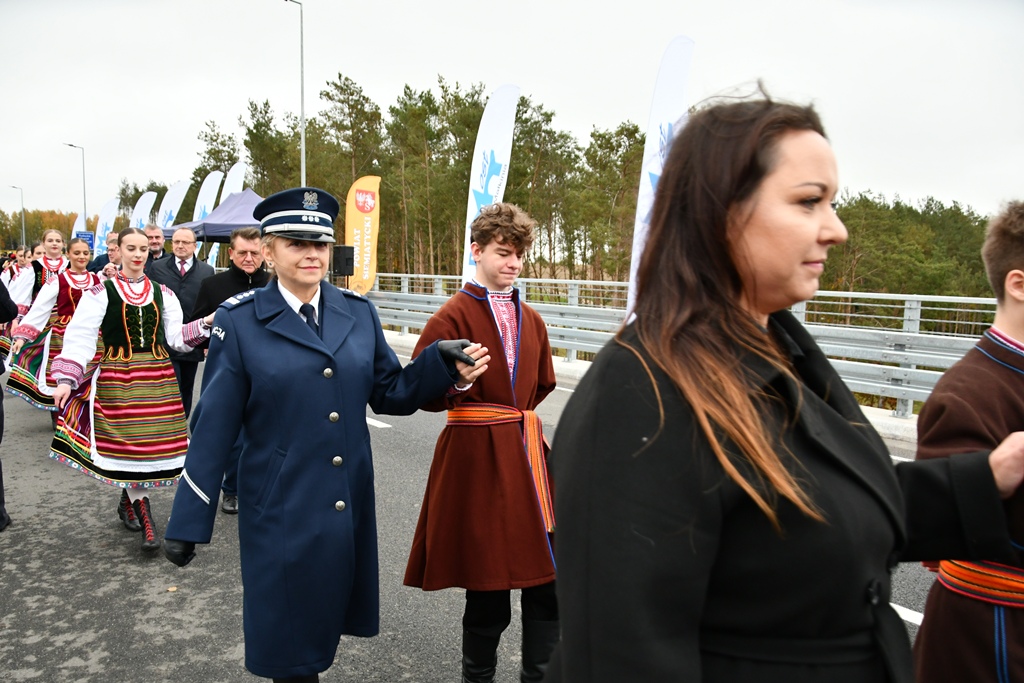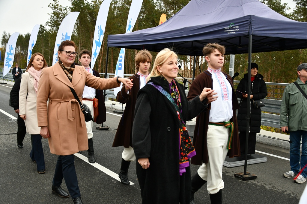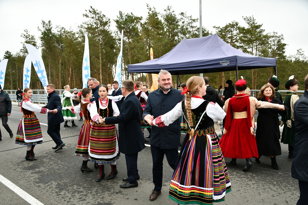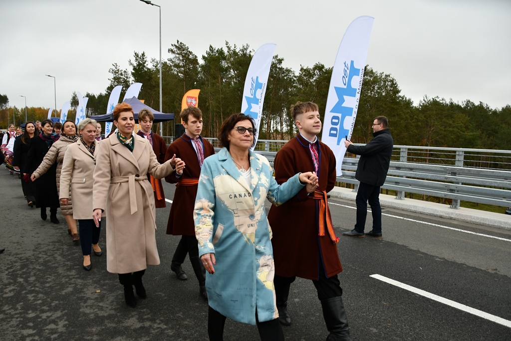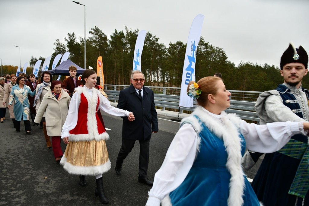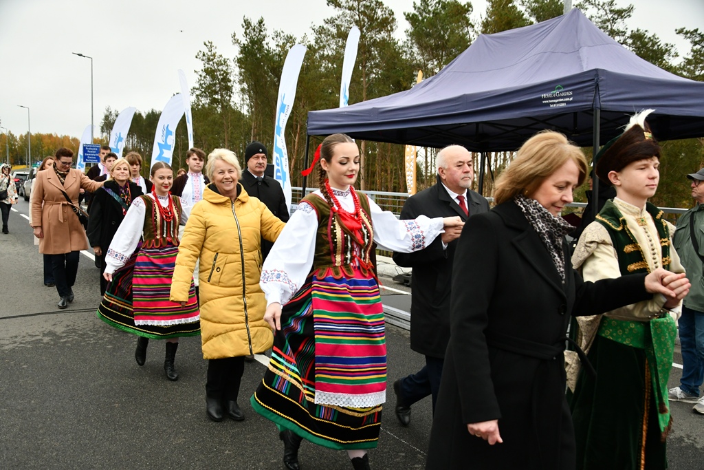 Dalsza część uroczystości miała miejsce na moście. Zanim oddano głos zaproszonym, miała miejsce ciekawa część artystyczna. Członkowie trzech Zespołów Pieśni i Tańca: Małe Podlasie, Kurpie Zielone oraz Sokołowianie zaprosili przybyłych gości do wspólnego zatańczenia poloneza. Młodzi artyści w barwnych strojach w rytm poloneza tanecznym krokiem przemierzali nowy most.