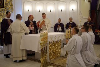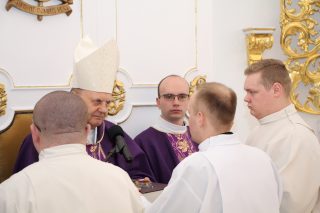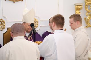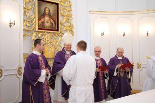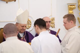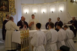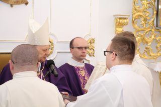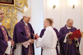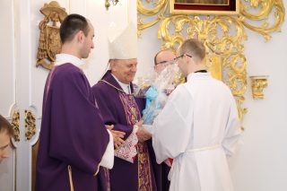 W czasie Mszy św. ks. Biskup pobłogosławił kandydatów a także symbolicznie wręczył lektorom – księgę Pisma Świętego, a akolitom – naczynie do udzielania Komunii Świętej. Na zakończenie Eucharystii alumni otrzymali również stosowne dekrety.